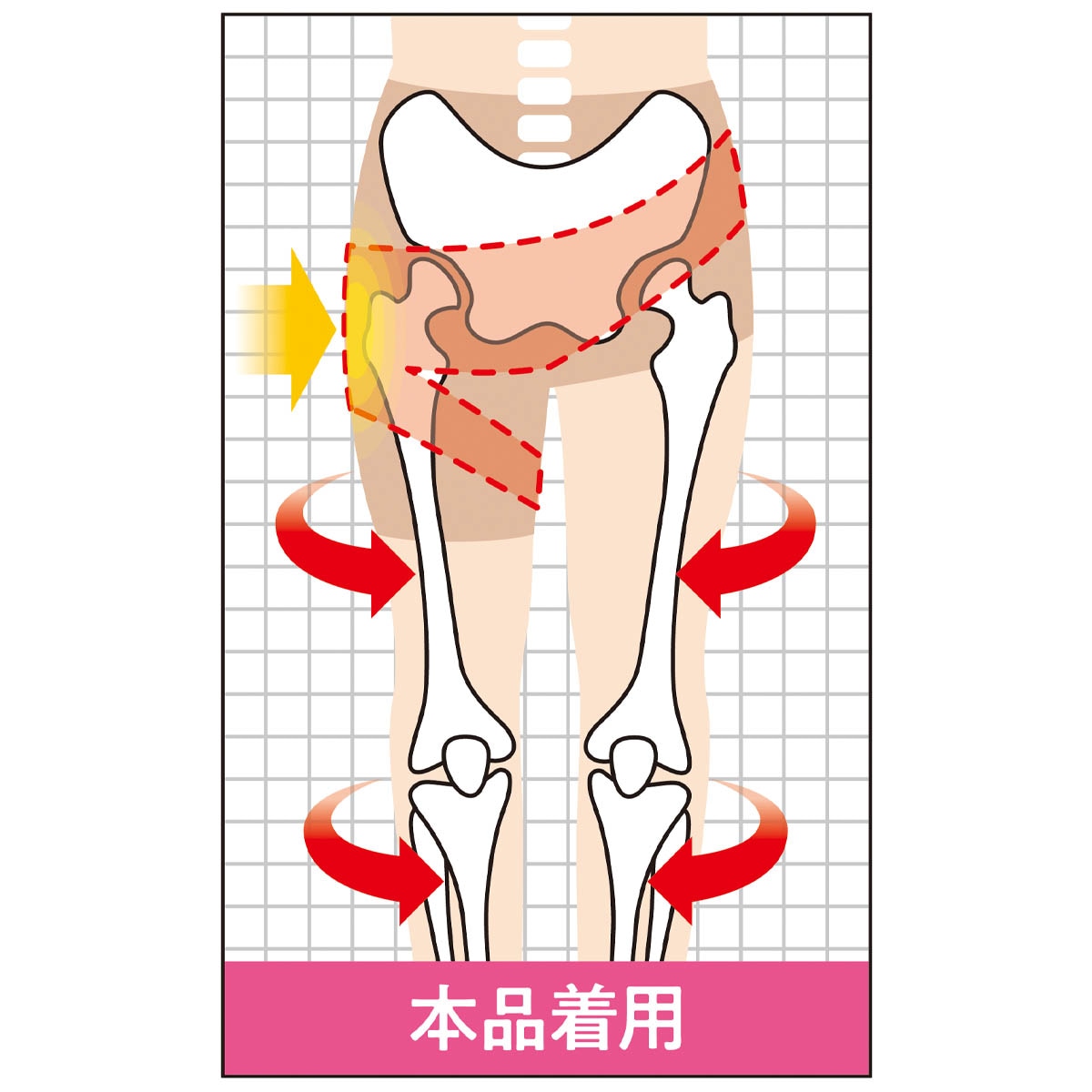 股関節まわりをテーピングラインでしっかりサポート!