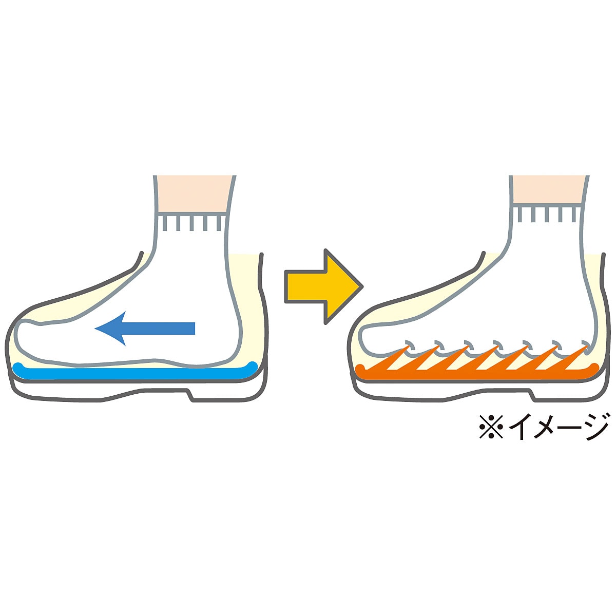 靴の中で足が動きにくい 敷くだけでうろこ状の起毛が靴下に引っ掛かり足裏をグリップ、足が動きにくくなります。