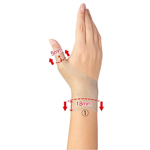 親指と手首全体を包み込んでサポート。半透明の薄型なので、目立ちにくく、動きを妨げません。ロングでも動きやすい曲線形状。円形サポートで関節を重点保護。薄型で伸縮性が高いので、動いても密着サポート。つけたままの水仕事もOK!