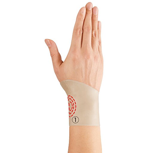 濡れてもOKの手首サポーター。半透明の薄型なので、目立ちにくく動きを妨げません。