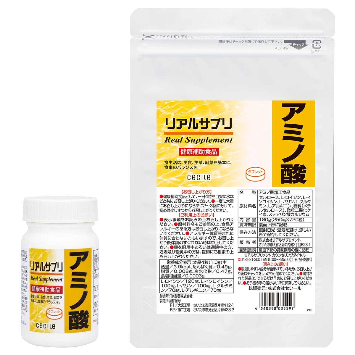 ■内容量M:250mg×120粒(約30日分)LL:250mg×720粒(約180日分)●1日の目安/4粒●主要成分(4粒当たり)/L-ロイシン 120mg、L-イソロイシン 100mg、L-バリン 100mg、L-グルタミン 70mg、L-アルギニン 70mg●原材料/セルロース、L-ロイシン、L-イソロイシン、L-バリン、L-グルタミン、L-アルギニン、糊料(メチルセルロース)、微粒二酸化ケイ素、ステアリン酸カルシウムリアルサプリ・リアルエクセレントシリーズはすべて国内工場で製造しております。※商品の特性上、返品・交換はお受けできません。