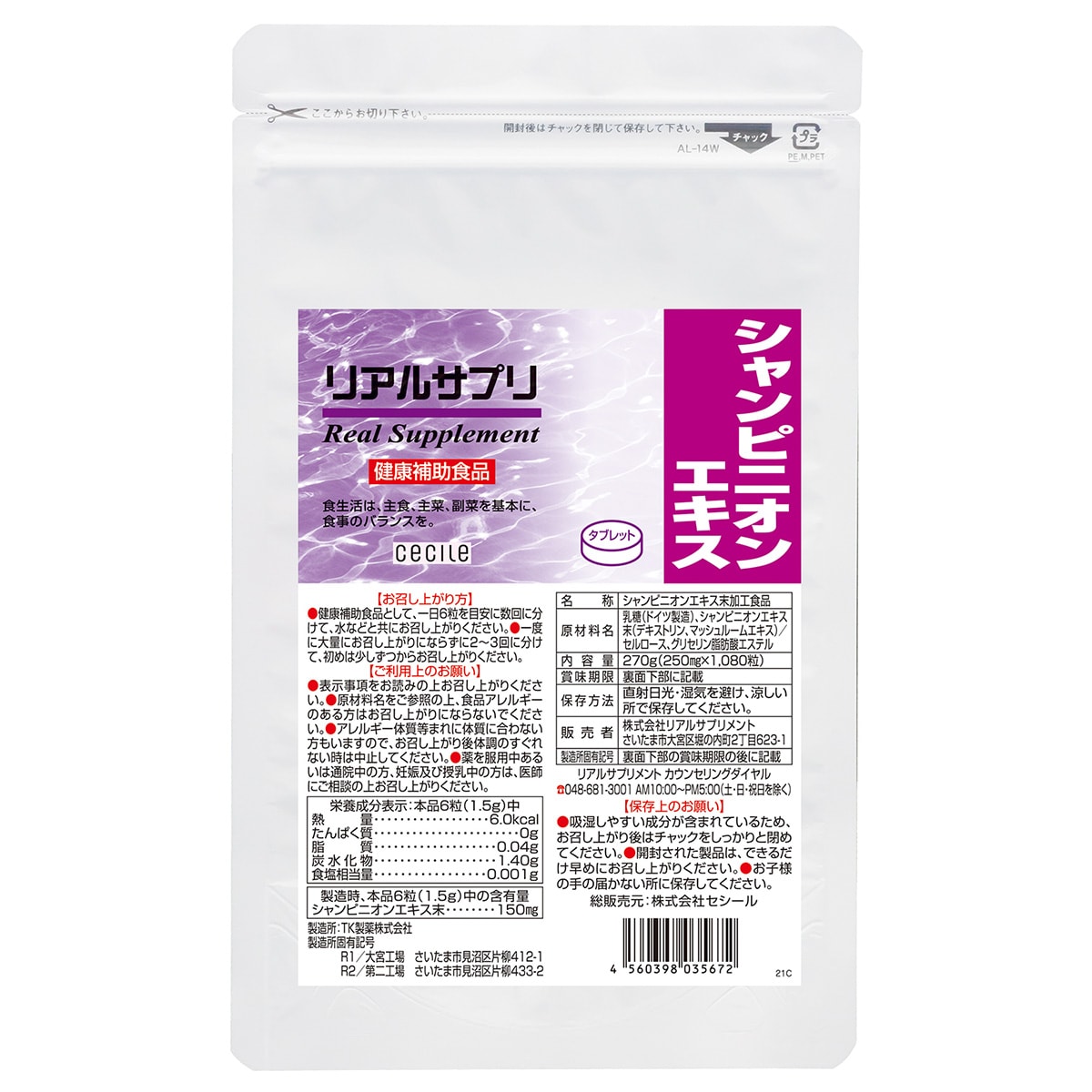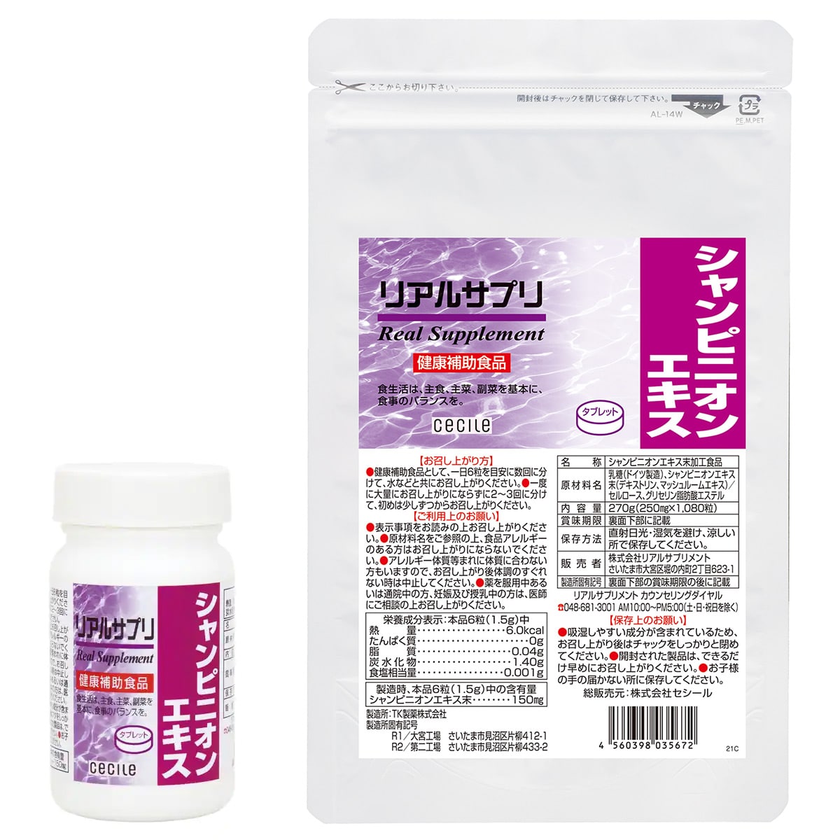 ■内容量M:250mg×180粒(約30日分)LL:250mg×1080粒(約180日分)●1日の目安/6粒●主要成分(6粒当たり)/シャンピニオンエキス末 150mg※原材料の一部に乳が含まれます。●原材料/乳糖(ドイツ製造)、シャンピニオンエキス末(デキストリン、マッシュルームエキス)/セルロース、グリセリン脂肪酸エステルリアルサプリ・リアルエクセレントシリーズはすべて国内工場で製造しております。※商品の特性上、返品・交換はお受けできません。