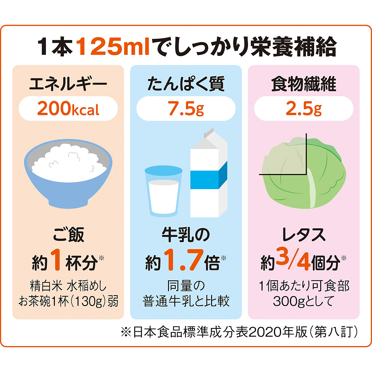 エネルギーの他にたんぱく質・食物繊維まで摂れる!食が細くなったご両親へのプレゼントにもいかがですか?【防災食にもおすすめ】災害時に不足しがちな栄養分の他に水分補給もできるメイバランスは防災食にもおすすめ。常温保存OKで保存にも適しています。1本で200kcalと6大栄養素(ミネラル※1・たんぱく質・脂質・糖質・食物繊維・ビタミン※2)を取ることができます!※1 ミネラル13種 ※2 ビタミン13種