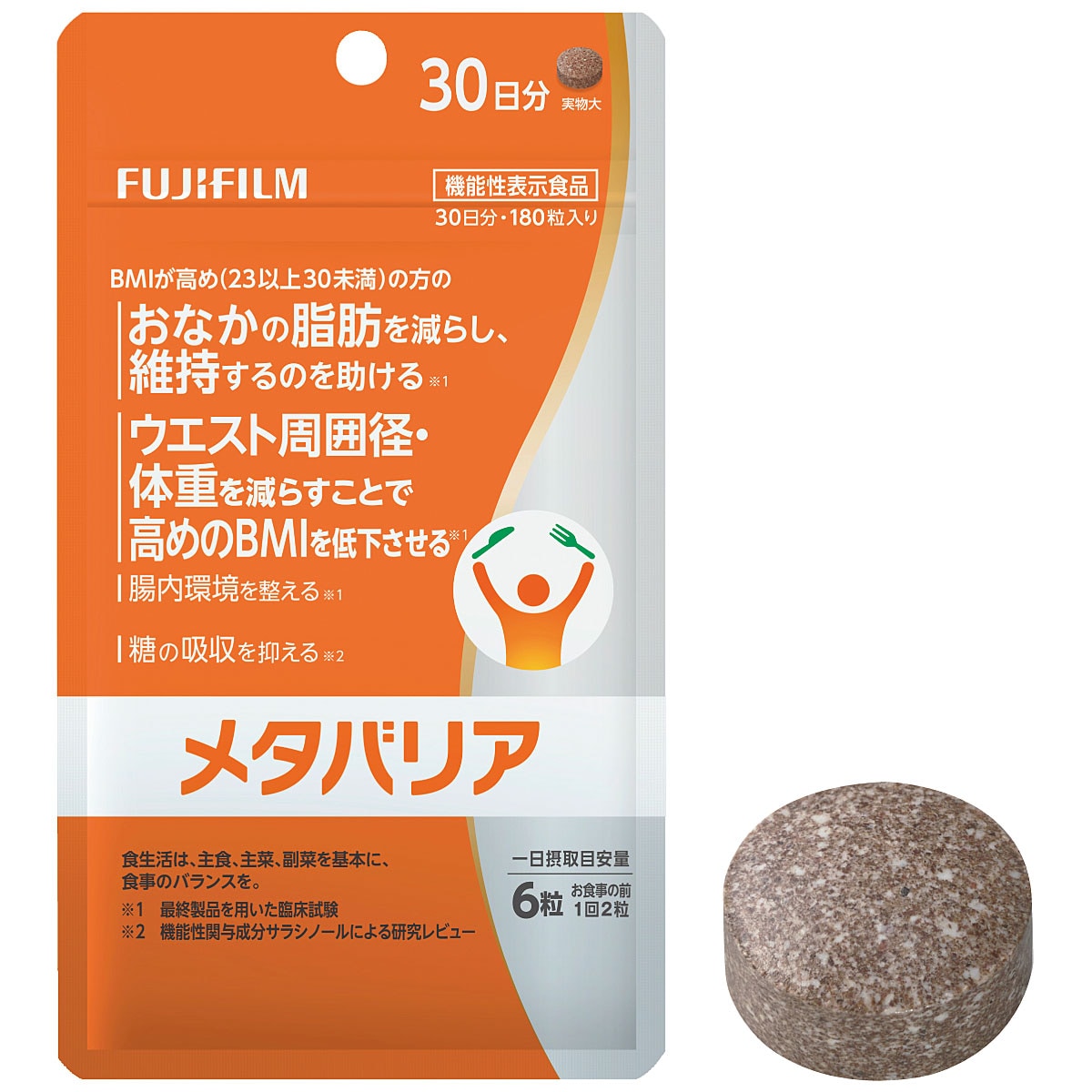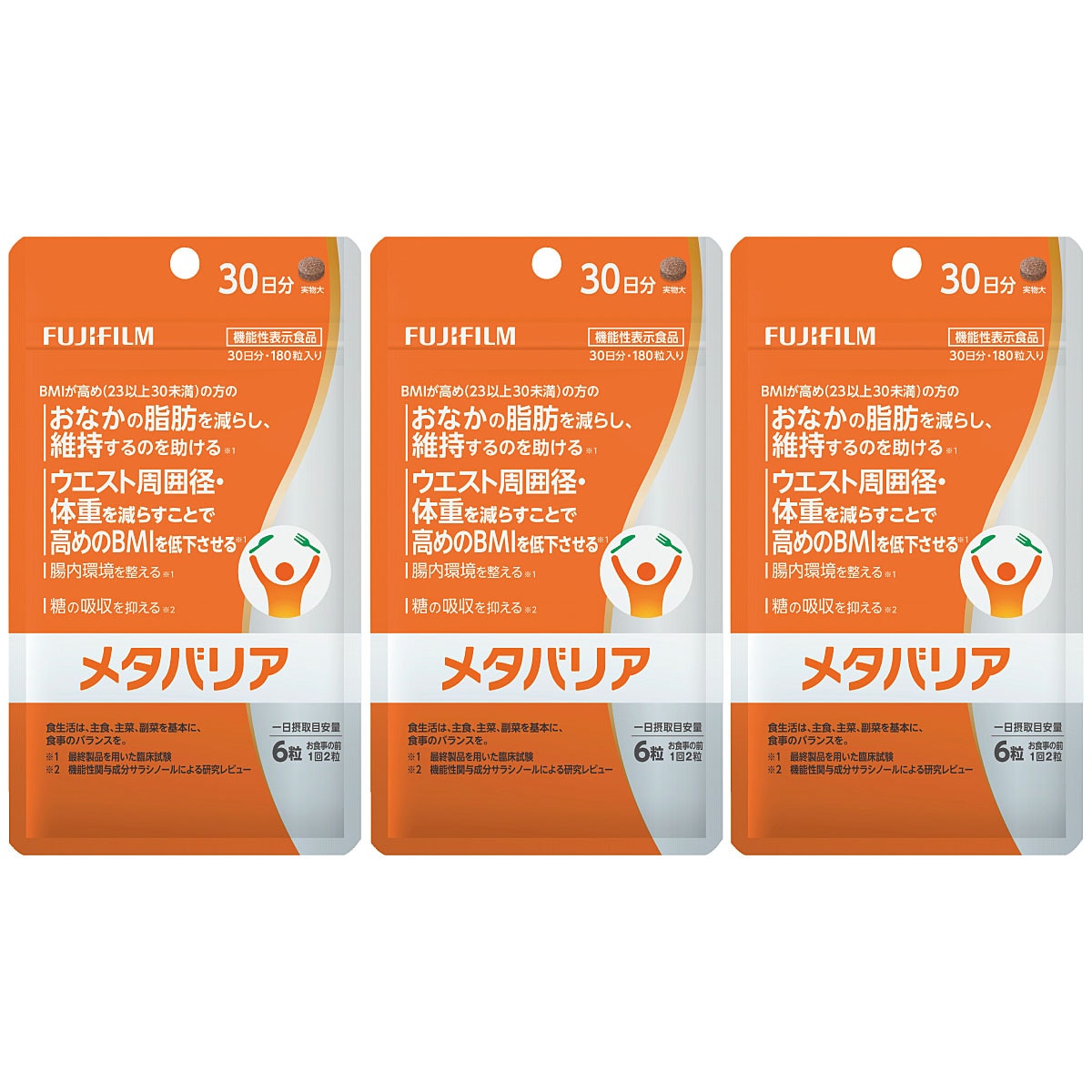 継続摂取により、BMIが高め(23以上30未満)の方の、おなかの脂肪(内臓脂肪・皮下脂肪・腹部総脂肪)を減らし、維持するのを助ける。