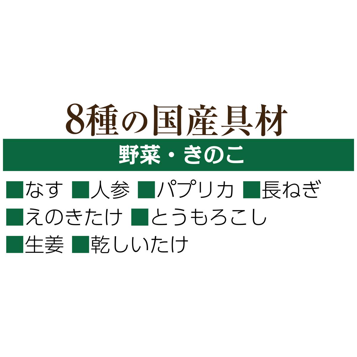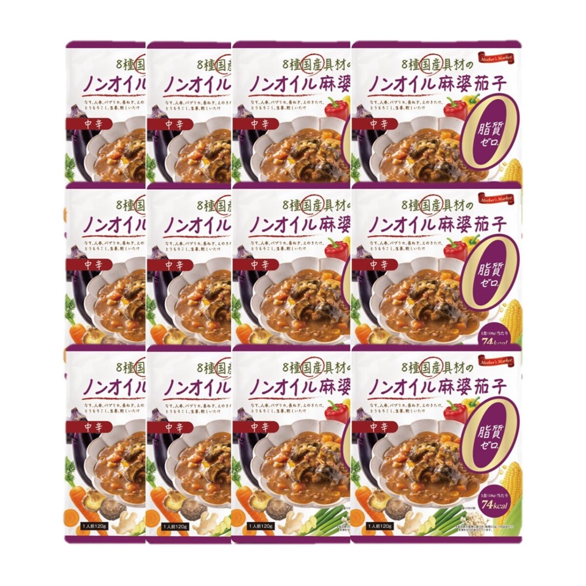 ■内容量/120g×12袋■原材料/野菜(なす(国産)、人参、パプリカ、長ねぎ、にんにく、とうもろこし、生姜)、砂糖、えのきたけ、でん粉、粒状植物性たん白、麦みそ、白菜エキス、たん白加水分解物、チキンブイヨンパウダー、醤油、豆板醤、乾しいたけ、酵母エキス、香辛料※原材料の一部に小麦、大豆、鶏肉が含まれます。※商品の特性上、返品・交換はお受けできません