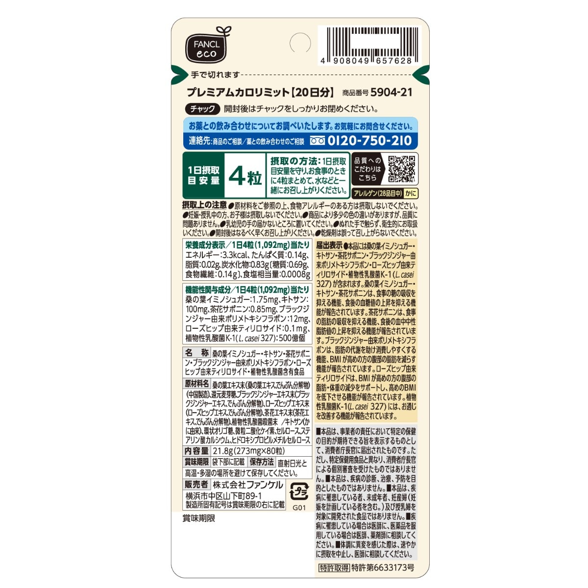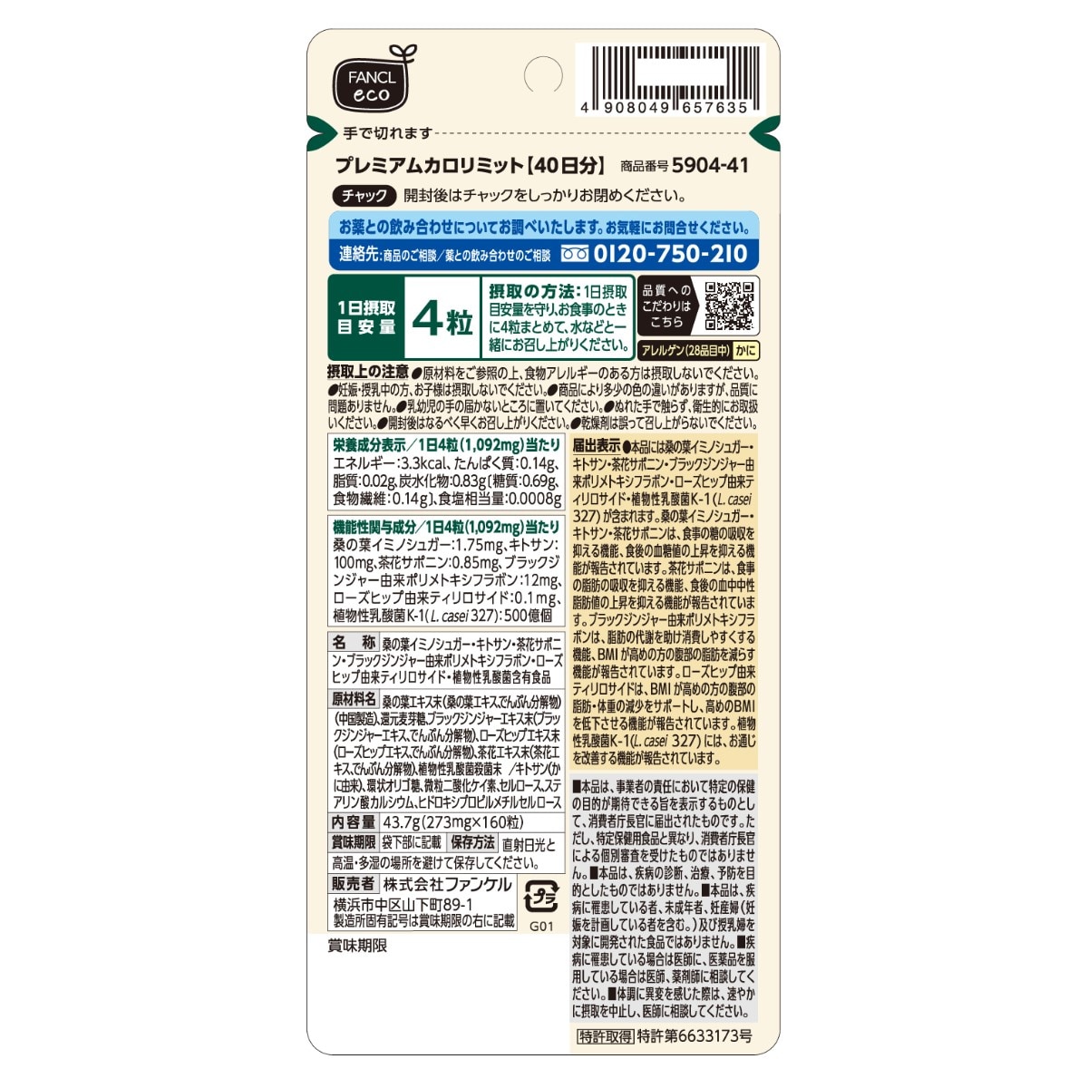 ●機能性関与成分/桑の葉イミノシュガー、キトサン、茶花サポニン、ブラックジンジャー由来ポリメトキシフラボン、ローズヒップ由来ティリロサイド、植物性乳酸菌K-1