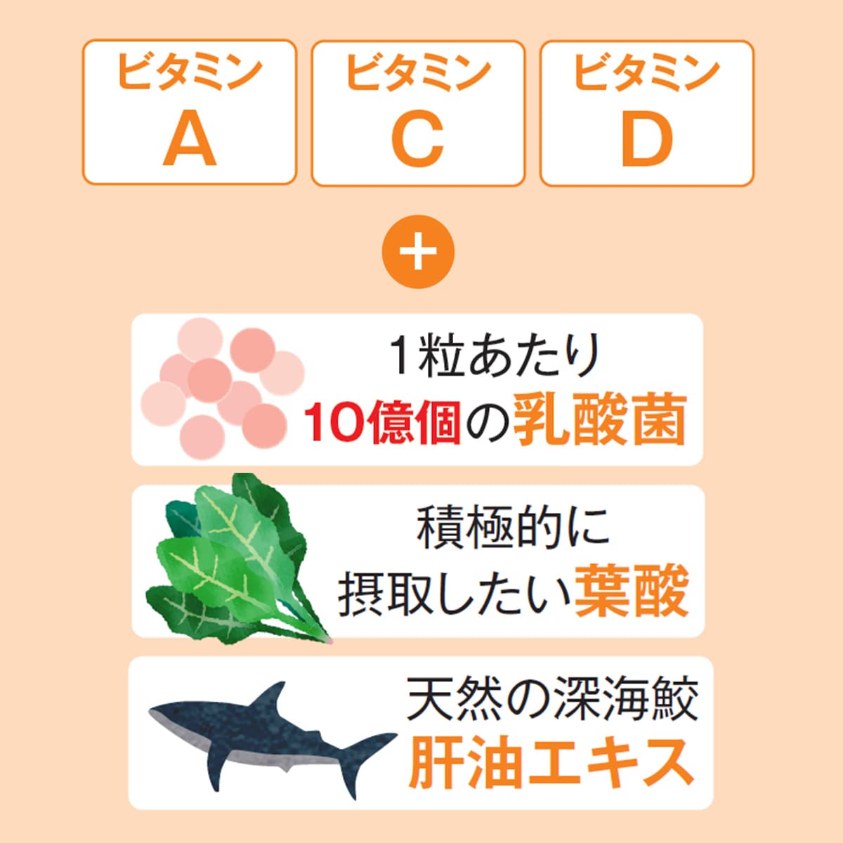 めぐすりの木エキス、アントシアニン、ビタミンAとアイケアを考えた成分をふんだんに配合しました。おとなの肝油ドロップ同様、ビタミンD・ビタミンCはもちろん、葉酸や乳酸菌に加え、本物の鮫肝油精製油も配合しています。●ご高齢の方でも食べやすいようやわらかく歯につきにくい噛んだ時に、歯にくっつく不快感を解消し、ご高齢の方でも食べやすいように、やわらかく仕上げています。