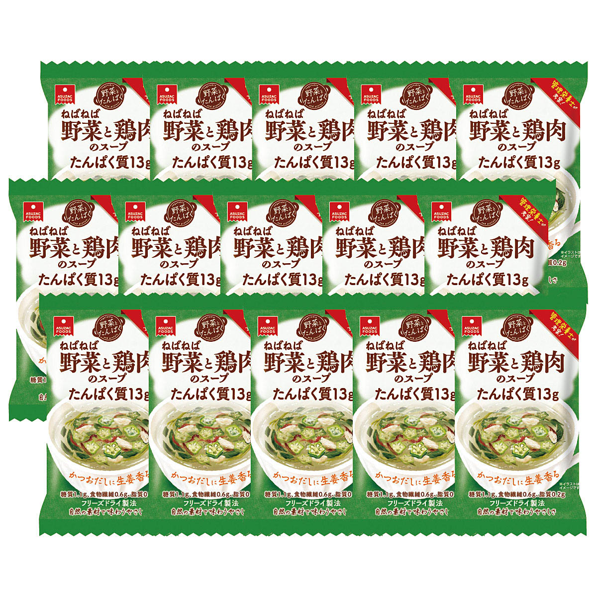 ■内容量/1食入り×15袋 計15食■原材料/コラーゲンペプチド(ベルギー製造)、発酵調味料、生姜ペースト、でん粉、粉末状大豆たん白、魚介エキス、食塩、砂糖、酵母エキス、プランタゴ・オバタ末、かつおだし、具(オクラ、モロヘイヤ、蒸し鶏、生姜、乾燥わかめ、乾燥赤つのまた、乾燥めかぶ)/酸化防止剤(V.E)※原材料の一部に大豆・鶏肉・豚肉が含まれます。※商品の特性上、返品・交換はお受けできません