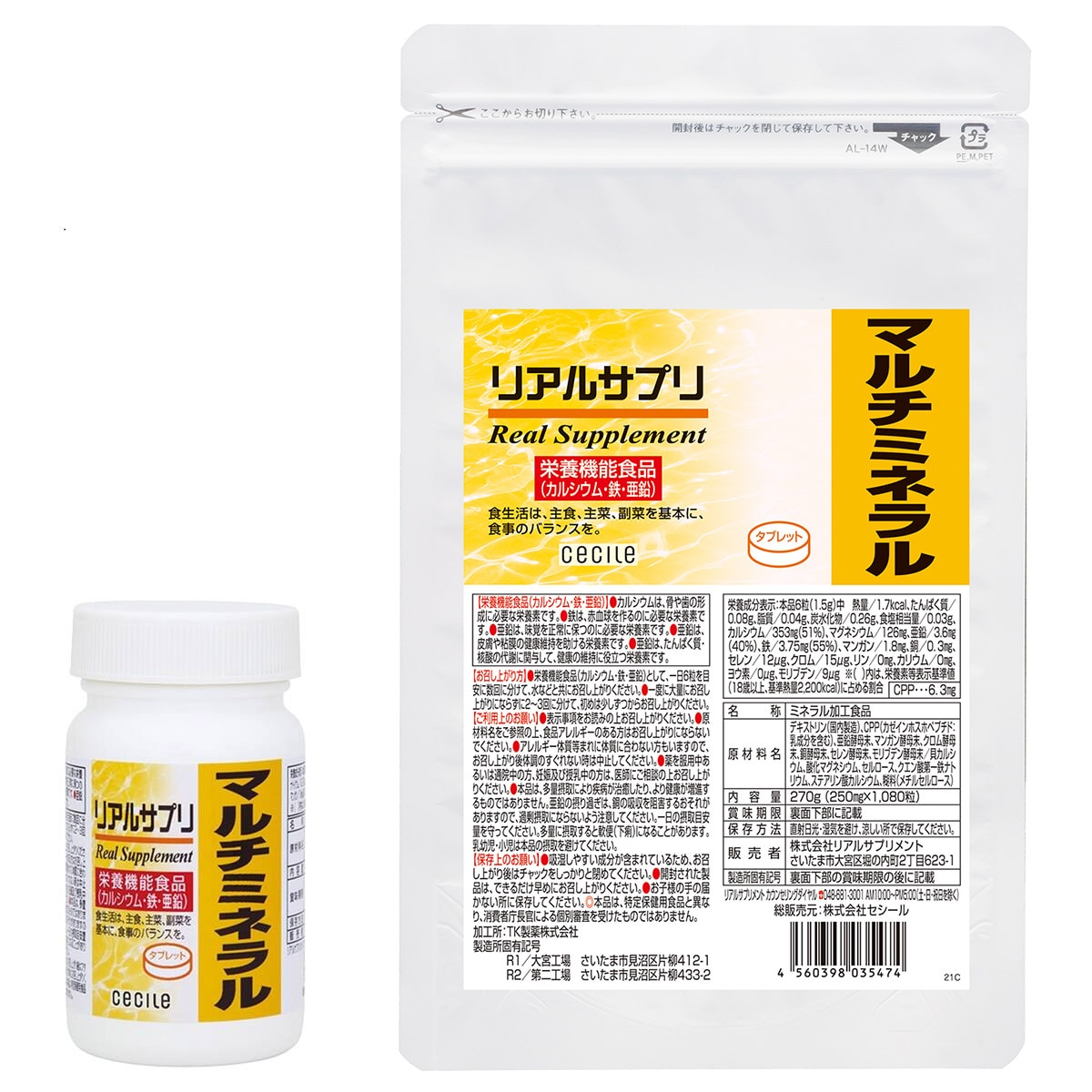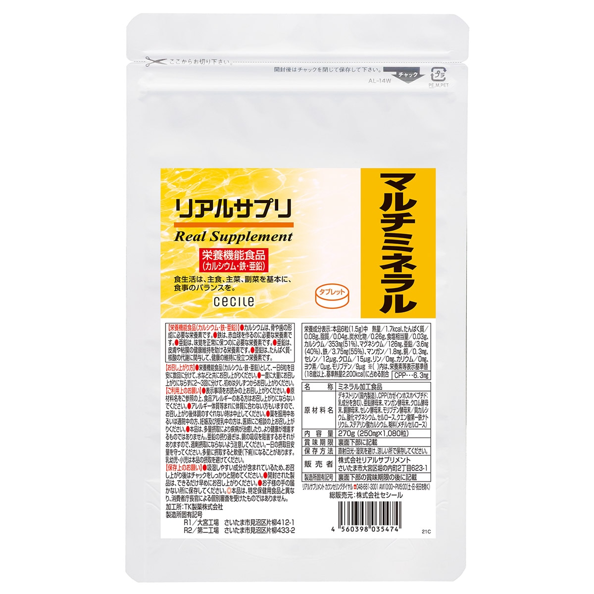 • リアルサプリ マルチミネラル<br>1日の目安:6粒