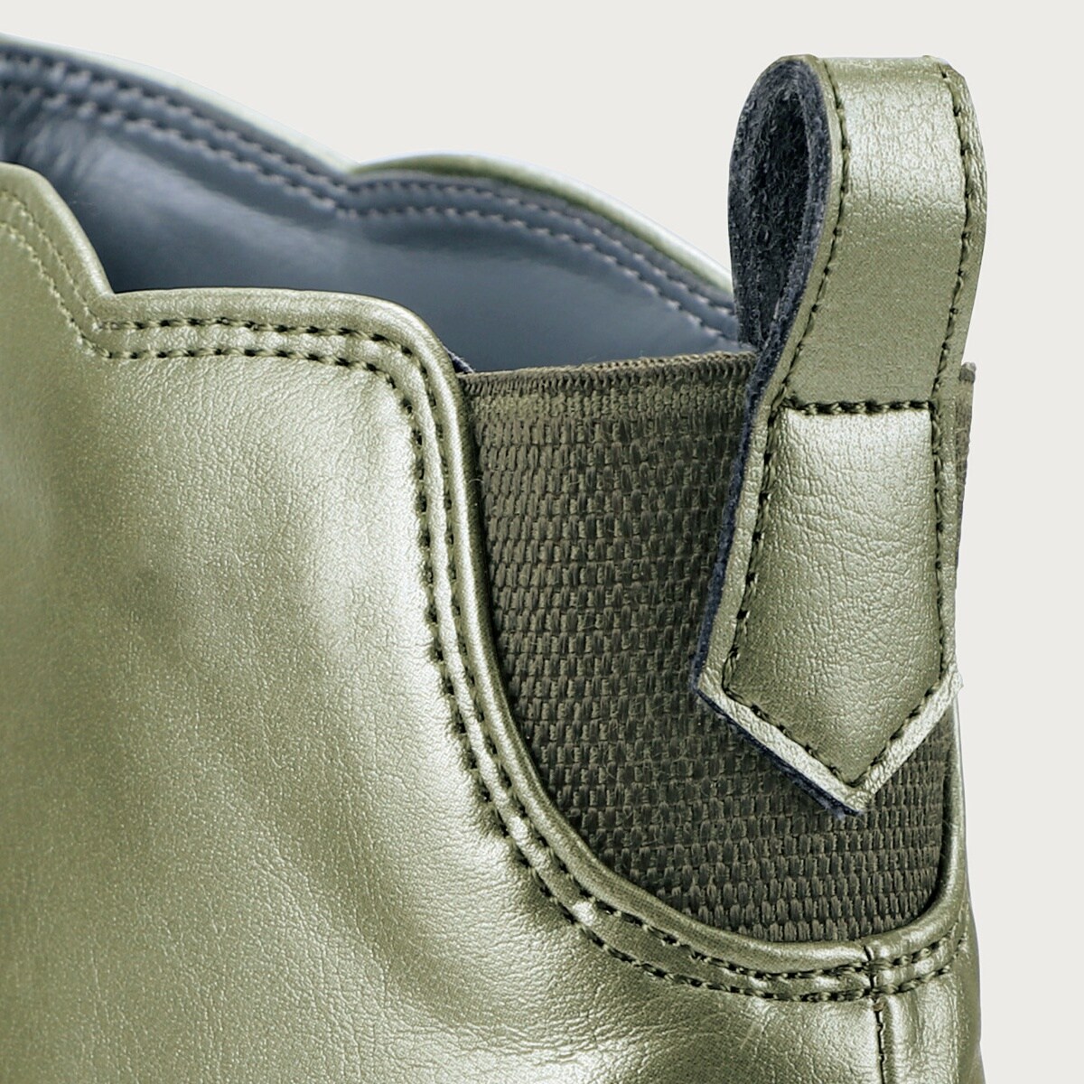 後ろ下がりの履き口に、かかとゴム&プルストラップで脱ぎ履きラク
