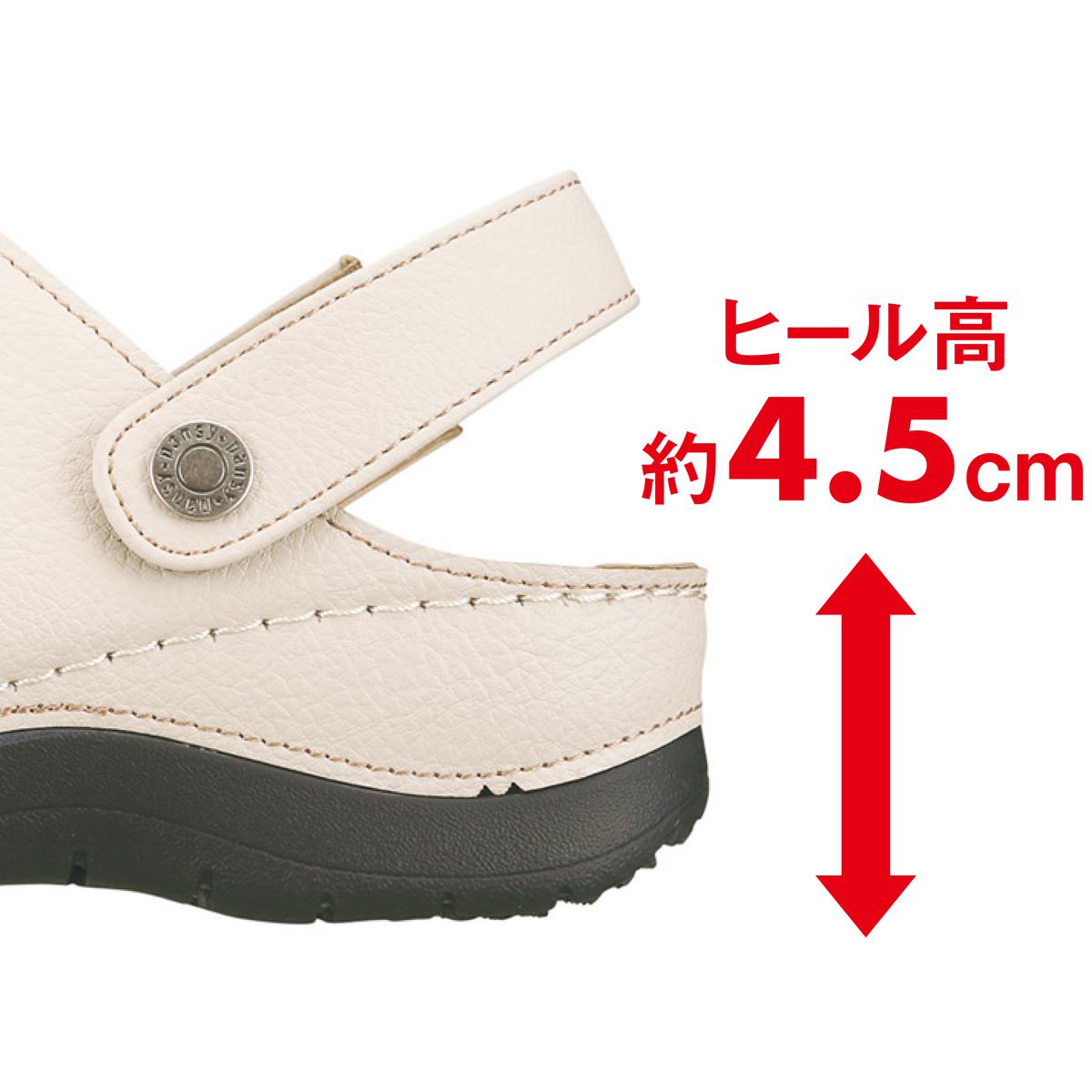 クッション性に優れたアウトソールとインソールで、疲れにくく長時間の歩行もラクラク。ーデザインーベルトが前後に動く2WAY仕様で、目的や用途に合わせて使い分けできます。ベルトを後ろに倒してサッとスリッパ履きにも。約4.5cmのボリュームヒールがかかとをしっかり支え、安定感のある履き心地。ー素材特性ーインソールはクッション性があり、足裏に優しくフィットしてくれます。