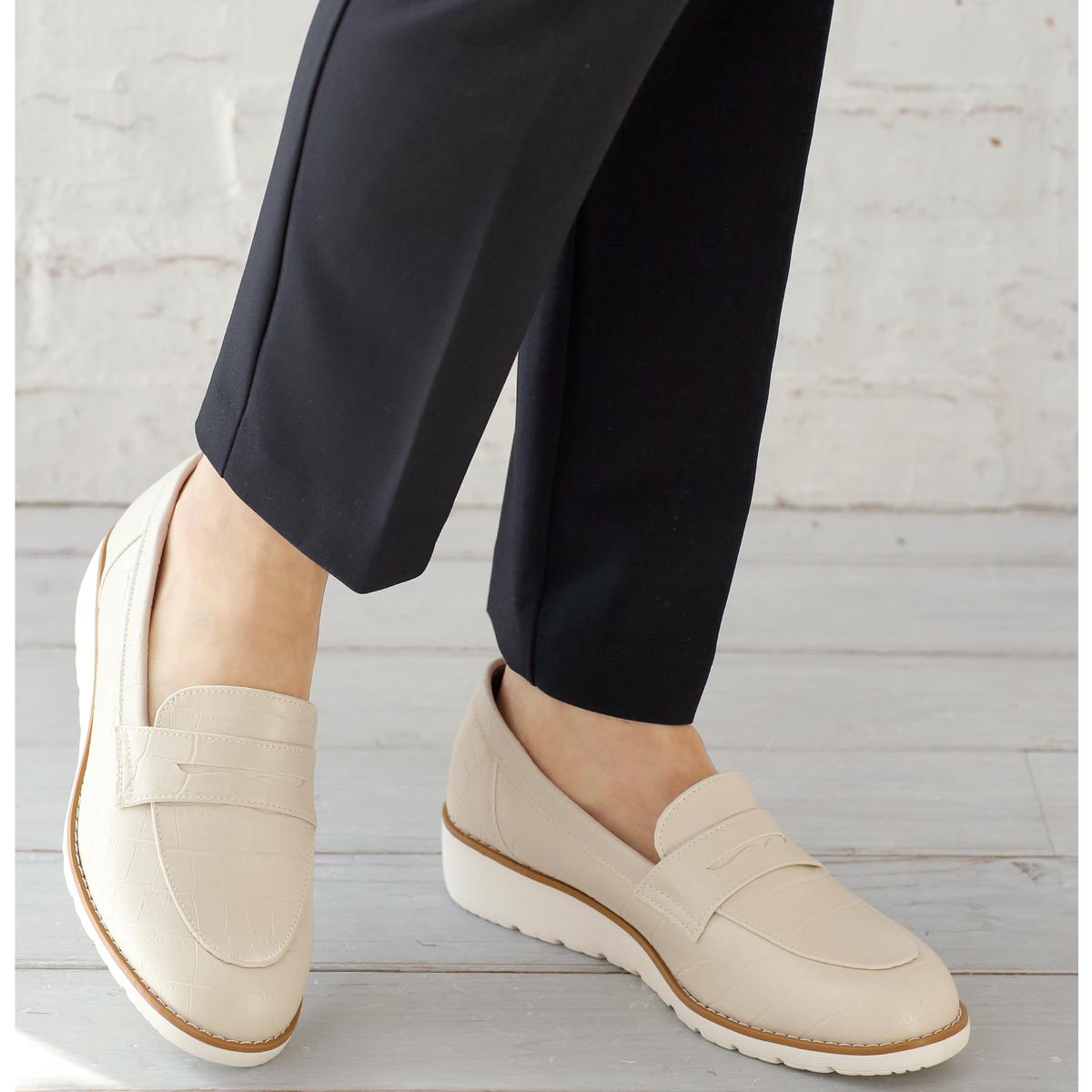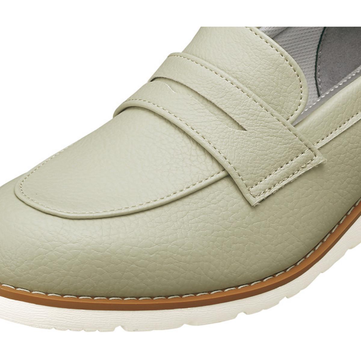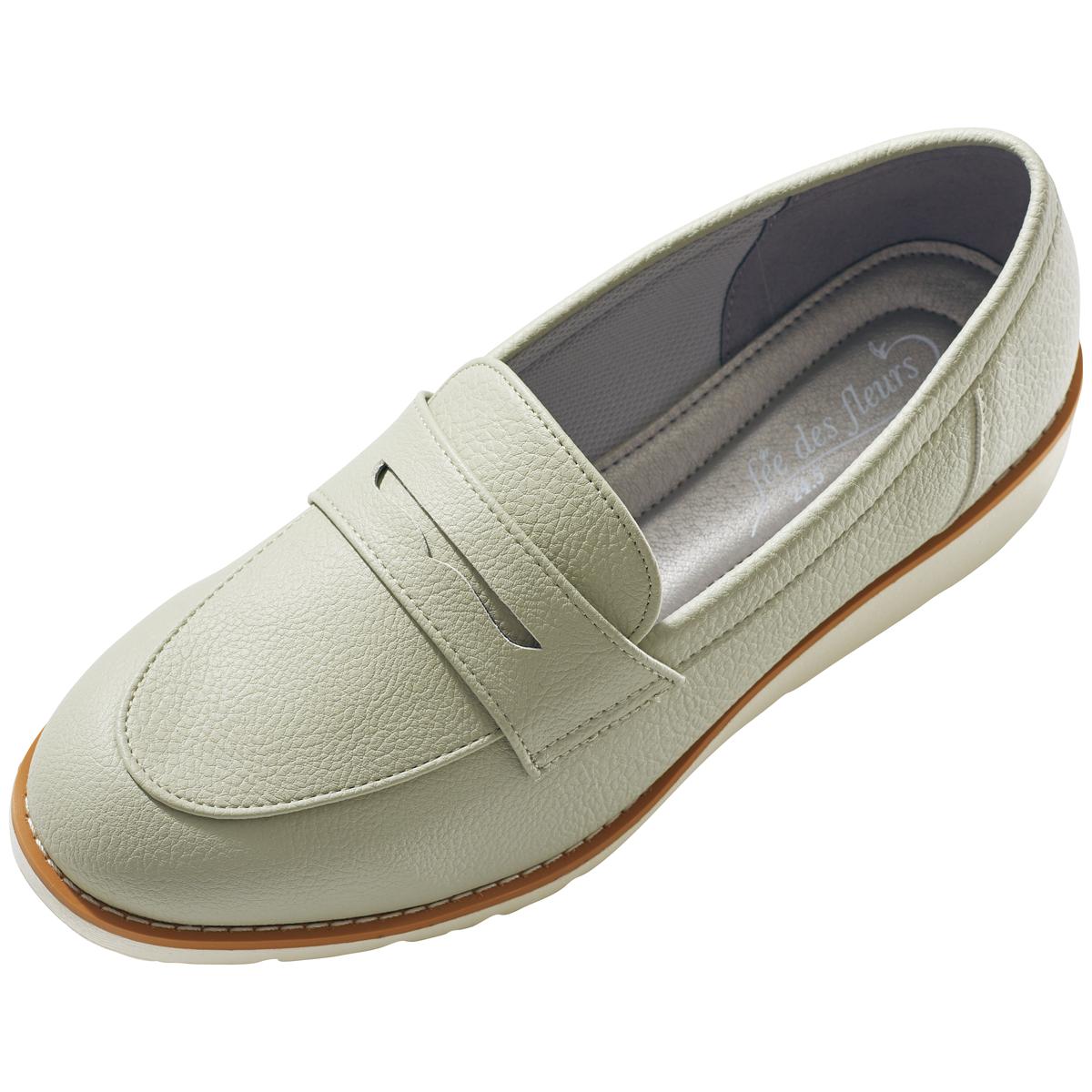 クッション性に優れた軽量ソールが、しなやかに屈曲して歩行をサポート。高反発ウレタン中敷が衝撃を和らげ、長く歩いても疲れにくい、シンプルで合わせやすいローファーです。ベーシックだからボトムを選ばずコーデの幅が広がります。ーデザインーソールを一周するように施されたステッチがアクセントに。ー素材特徴ー柔らかなシボ感のある合皮を甲の素材に採用。内側にさらりと心地よいメッシュ素材を使用しています。【軽量約190g(23cm片足)】【抗菌(中敷)】