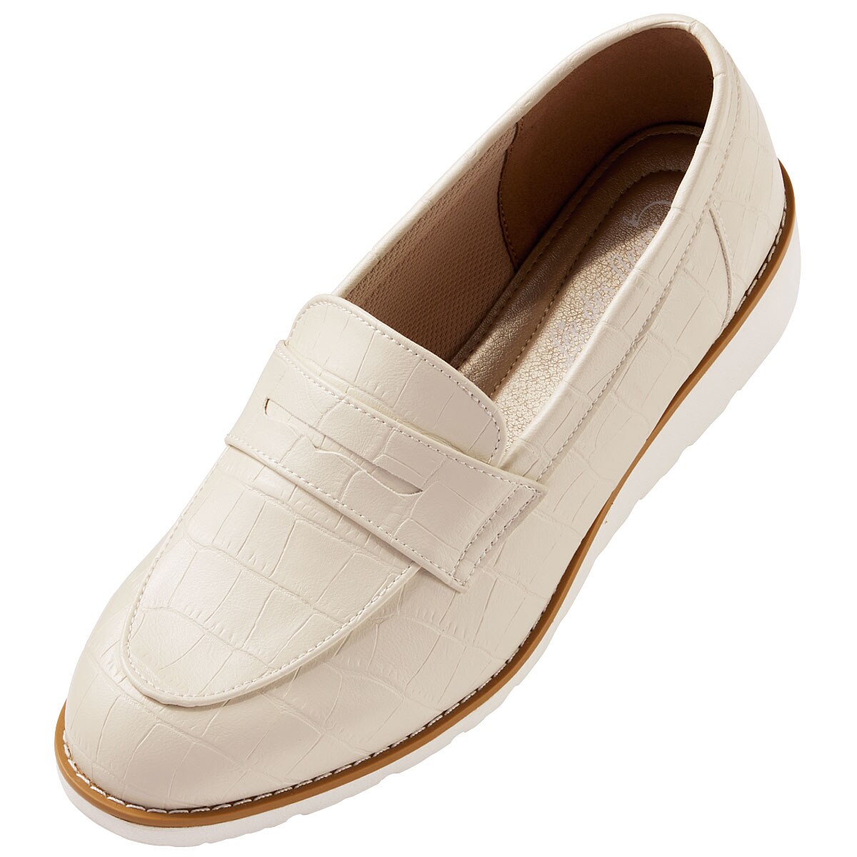 クッション性に優れた軽量ソールが、しなやかに屈曲して歩行をサポート。高反発ウレタン中敷が衝撃を和らげ、長く歩いても疲れにくい、シンプルで合わせやすいローファーです。ベーシックだからボトムを選ばずコーデの幅が広がります。ーデザインーソールを一周するように施されたステッチがアクセントに。ー素材特性ー柔らかなシボ感のある合皮を甲の素材に採用。内側にさらりと心地よいメッシュ素材を使用しています。