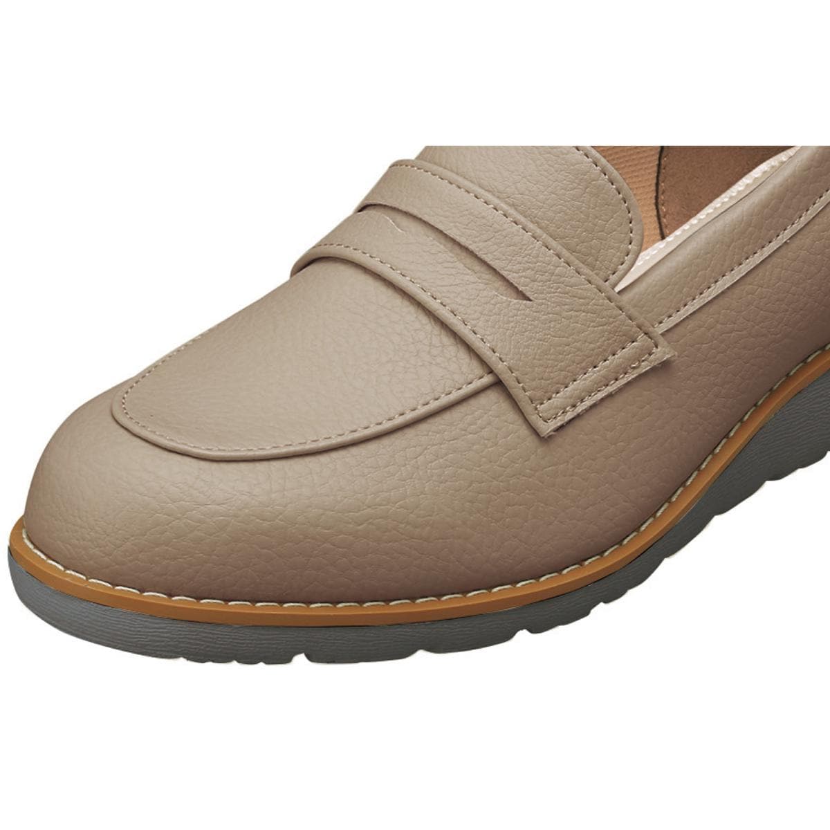 クッション性に優れた軽量ソールが、しなやかに屈曲して歩行をサポート。高反発ウレタン中敷が衝撃を和らげ、長く歩いても疲れにくい、シンプルで合わせやすいローファーです。ーデザインーソールを一周するように施されたステッチがアクセントに。ベーシックだからボトムを選ばずコーデの幅が広がります。ー素材特徴ー柔らかなシボ感のある合皮を甲の素材に採用。内側にさらりと心地よいメッシュ素材を使用しています。【軽量約190g(23cm片足)】【抗菌(中敷)】