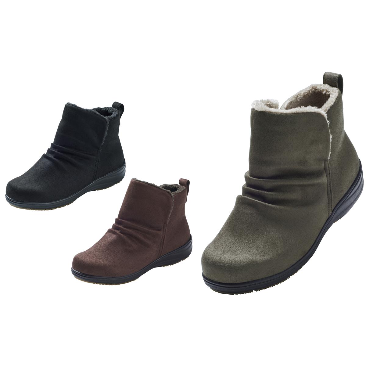【Pansy(パンジー)】スッと足入れできて、はき心地ゆったりな5E幅広設計のあったかショートブーツ