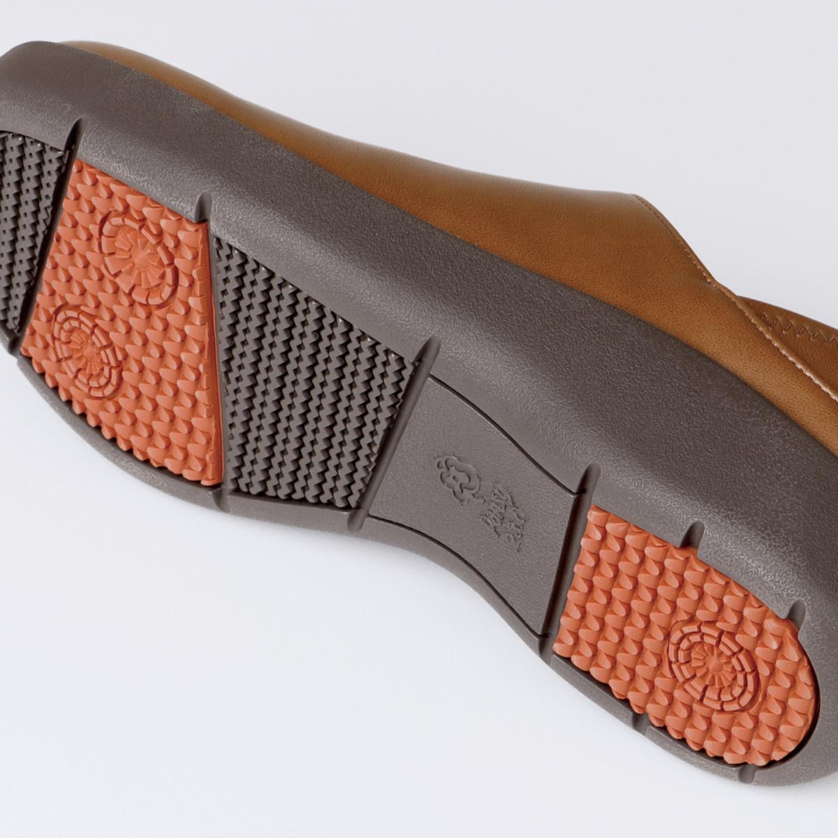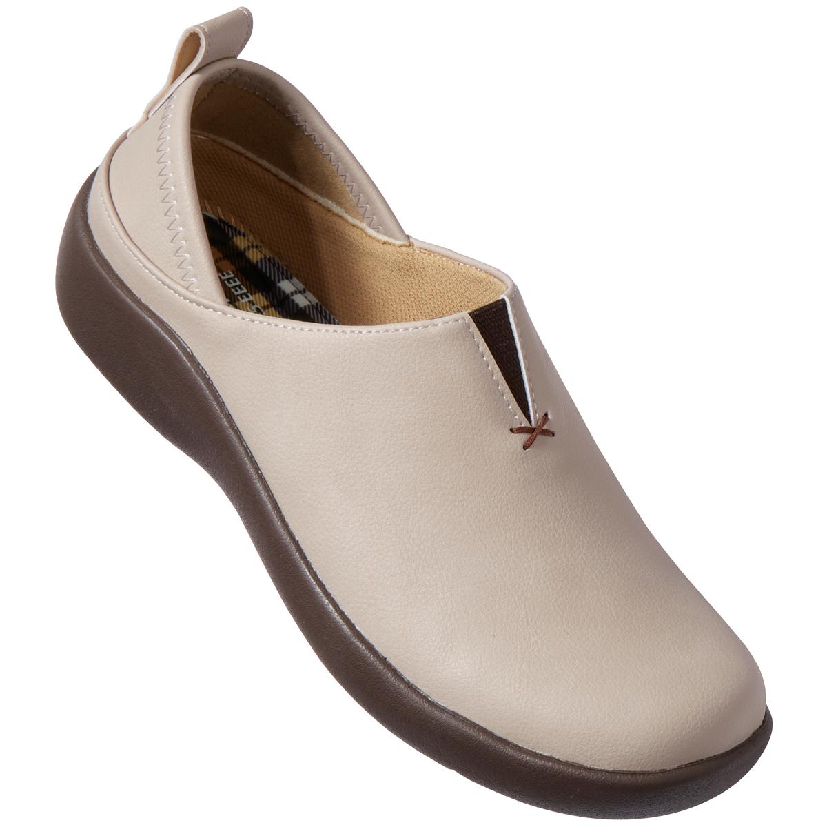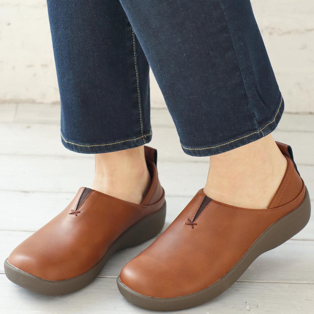 ころんとした丸みのある形で、ゆったりとしたはき心地。かかとが柔らかく、脱ぎはきもラクラク!かかとを踏んでもはいてもOK!ーこだわりPOINTー・かかとに芯が入っておらず、足入しやすい。・はき口にゴムを使用し、脱ぎはきしやすい。・かかとにフィットし、衝撃を軽減するU字型クッションを使用。・靴底の一部にはグリップ性のあるゴム素材を使用。【抗菌防臭】※中敷