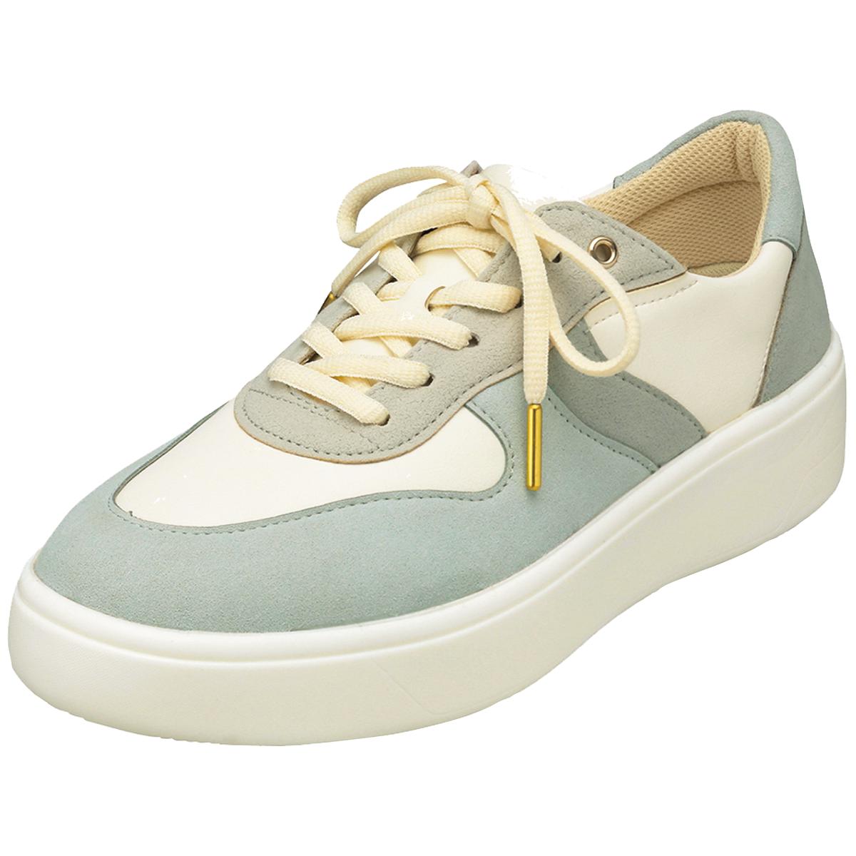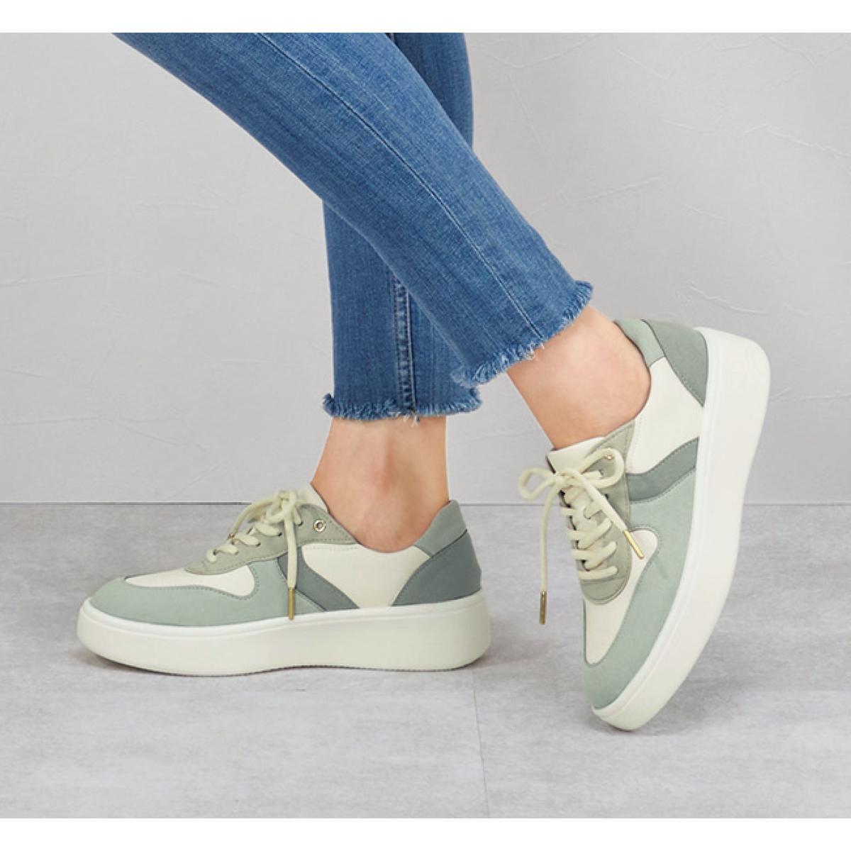 ソフトな色あいできれいめスタイルにも合わせやすい厚底スニーカー。-こだわりPOINT-まるでマシュマロのような柔らかさと弾力の独自設計アウトソールで弾むように軽やかな歩き心地を実現。履き口のゴムがスムーズな足入れをサポート。マシュマロのような弾力を持つ軽量ソールで、軽快な歩き心地をサポートし、弾力性のあるカップインソールで足裏への衝撃を軽減!●軽量約165g(23cm片足)●抗菌防臭(中敷)●幅広3E相当