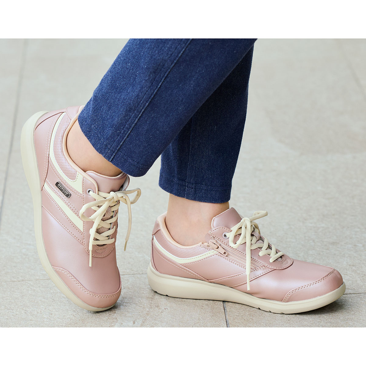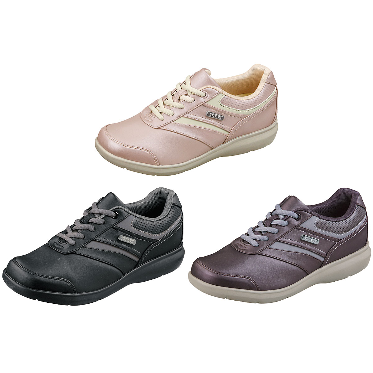 ーこだわりPOINTー(1)アーチサポートインソールアーチクッションが土踏まずを優しく支え、つま先やかかとにかかる圧力を分散します。(2)ファスナーで脱ぎはきスムーズ内側にファスナーが付いているので靴ヒモをほどく必要がなく、脱ぎはきもラクラク。(3)屈曲性がよく歩きやすい靴底の屈曲部分に沿って溝(FlexLine)を設け、足の動きにフィットし、快適歩行をサポート。(4)軽く弾力性のある靴底靴底の一部にグリップ性のあるラバーパーツを配置。弾力性のあるソールで軽やかな歩き着心地。【防水】【軽量約199g(23cm片足)】■素材/[甲材]合成皮革、合成繊維 [底材]合成底 ■ヒール高/約3.4cm ■重量/約199g(23cm片足) ■ワイズ/4E相当 ※完全防水ではありません。(接地面より3cm×6時間防水設計)●ベトナム製※靴の試し履きは必ず室内でお願いします。一度ご使用になられた靴の交換・返品はご遠慮ください。※雨の日や水に濡れた路面・床面でご使用の場合には、スリップや転倒の危険がありますので、歩行の際には十分ご注意ください。