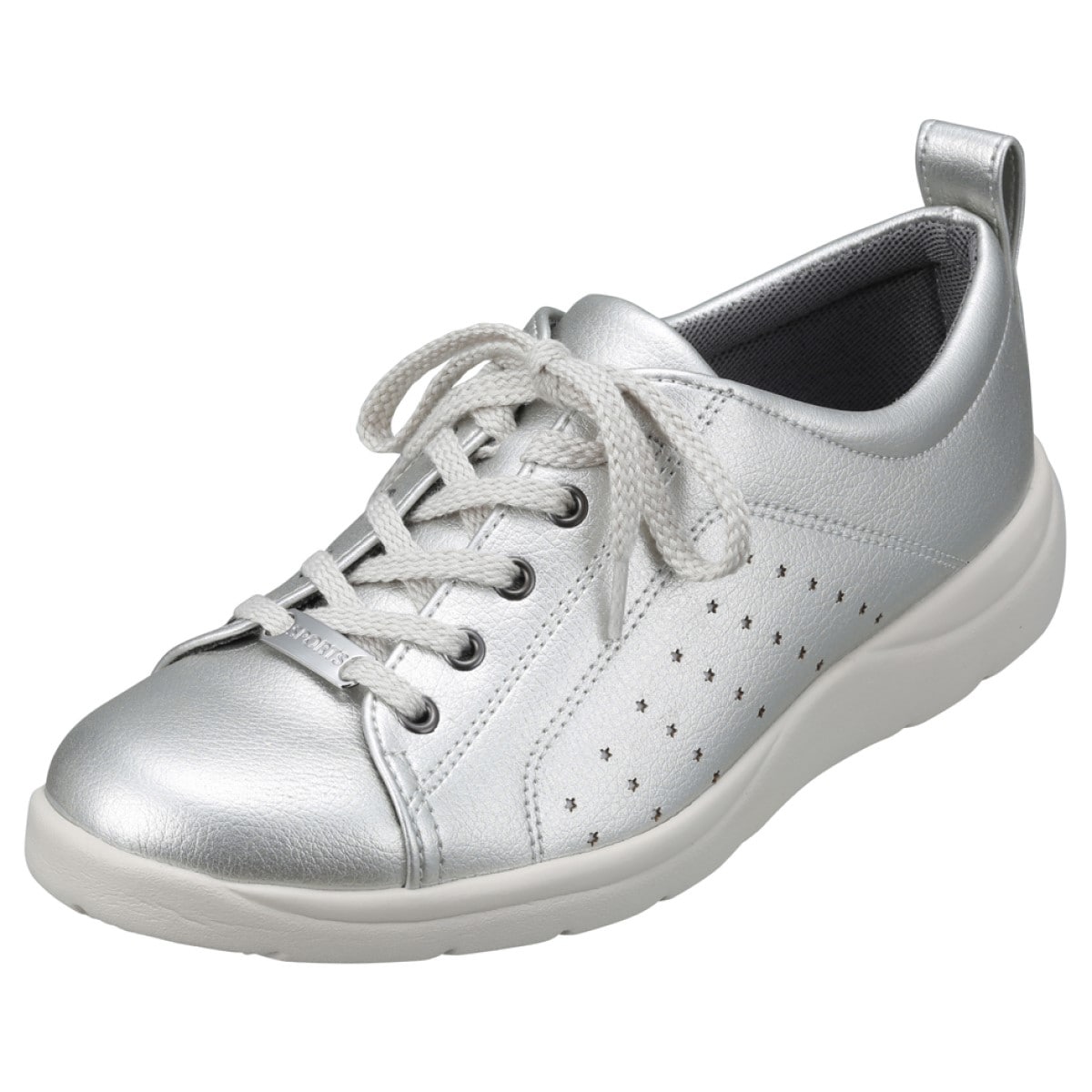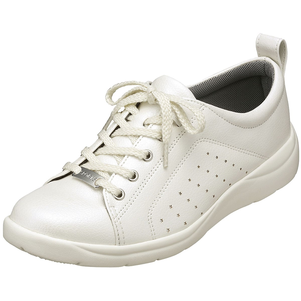 ふかふかのインソールが足への負担を軽減、軽さと歩きやすさが嬉しいスニーカー。星形のパンチングがおしゃれなポイントに。ーこだわりPOINTー・大人かわいいサイドの星型パンチングがアクセントに。・はき口に近いひも通しにゴム素材を使用して、足入れをサポート!・中敷のU字型アーチクッションが足裏にフィットし、衝撃を緩和。【軽量約170g(23cm片足)】【抗菌防臭(中敷)】