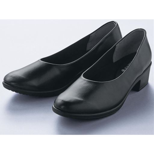 やや高めの約4.5cmながら、安定感のあるヒールで足元をスッキリ見せます。かえりが良く、軽量のソールで長時間はいてもラクです。ーこだわりPOINTー・U字型アーチクッションが、かかとを包み込むようにフィットして足裏への衝撃を緩和します。・甲部分は足の動きにフィットする伸縮性のある素材を使用し、快適歩行をサポート。・ツヤのある合成皮革素材が上品な印象を与えます。