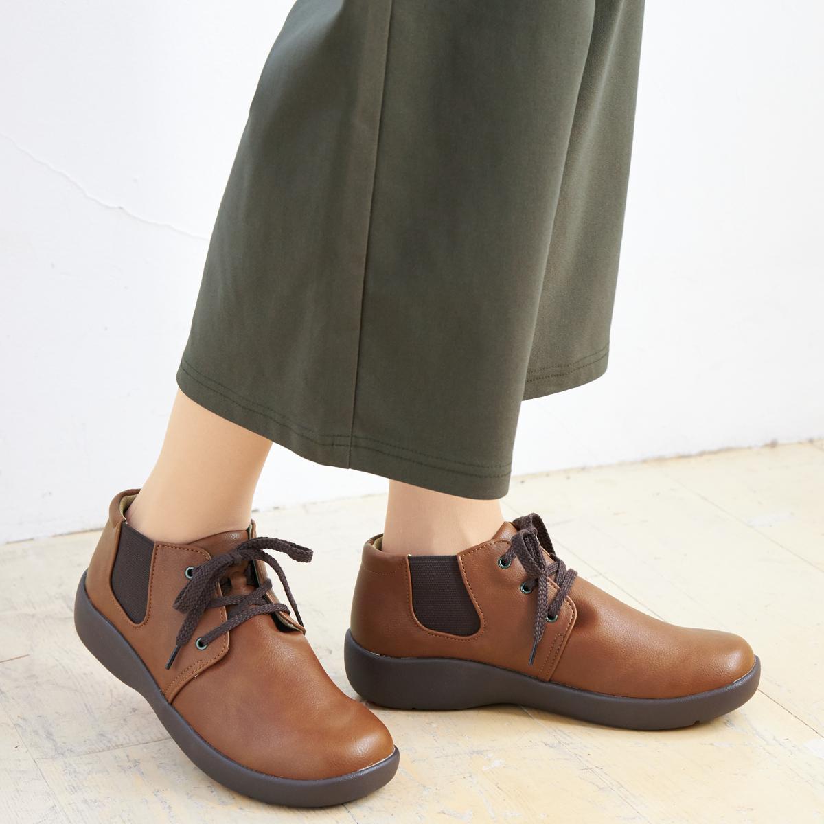【Pansyパンジー】サイドゴアで脱ぎはき簡単レースアップシューズ