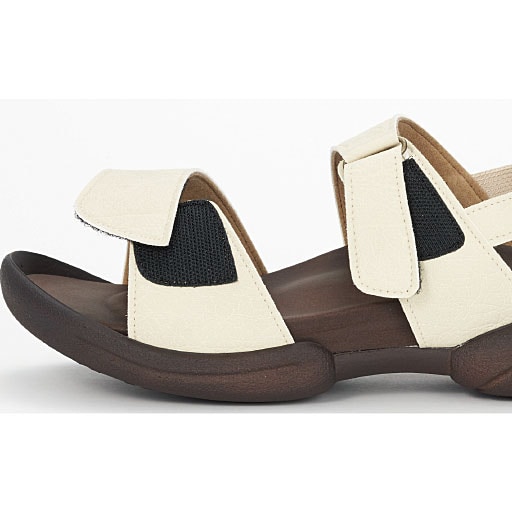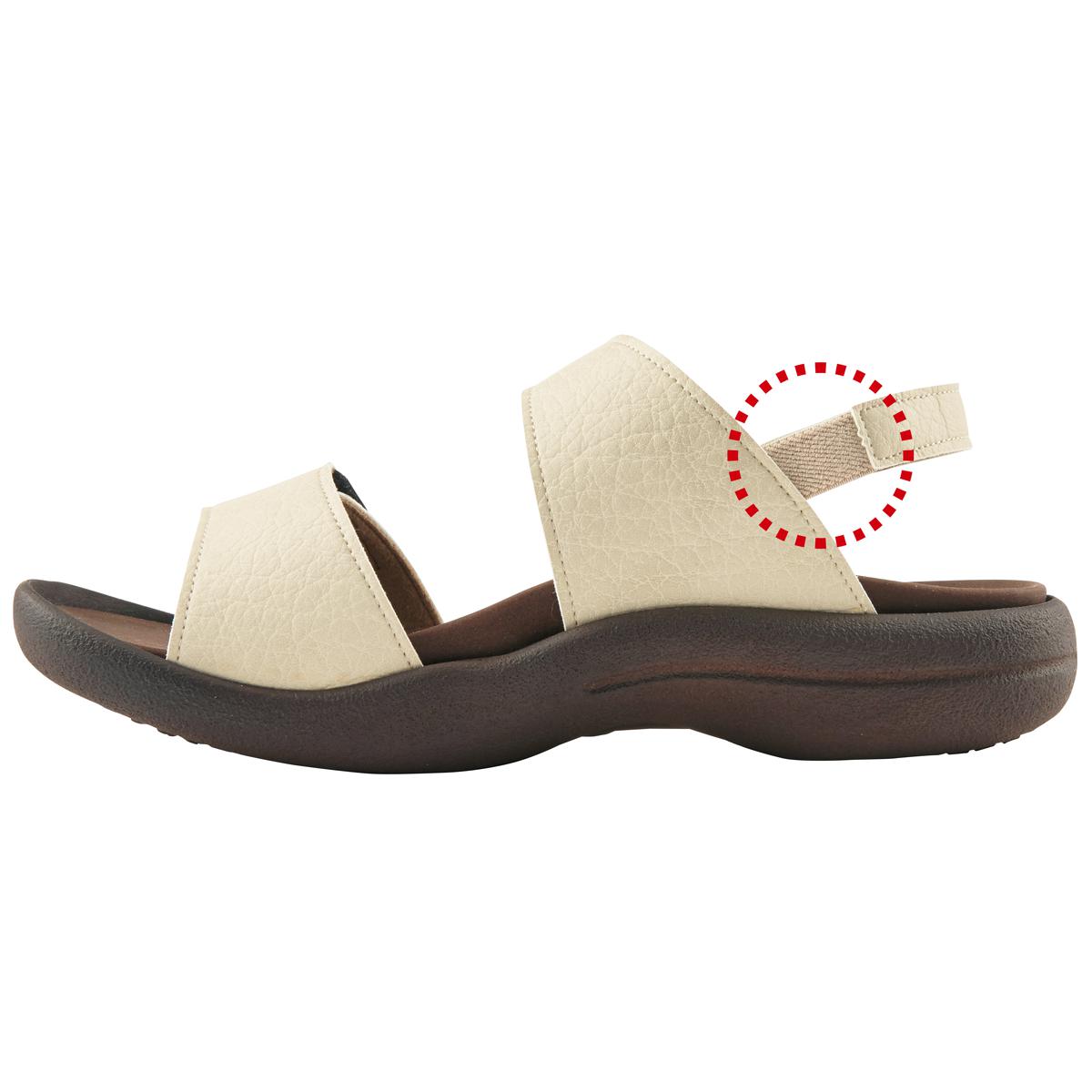 弾力のあるグミインソール®で快適歩行。自分サイズに足幅調整OK!-デザイン-安定感のあるワンベルトタイプ! 内側のサイドゴムで足にフィット。甲ベルトは面ファスナーなので調節ができます。ラウンドトゥで足先が広いため、窮屈に感じにくくゆったりはける。-素材特徴-柔らかく弾力性のあるグミインソール®。立体的な形状で足裏の凹凸にフィットし、歩く時の負担を軽減します。長時間のお出かけもラク。