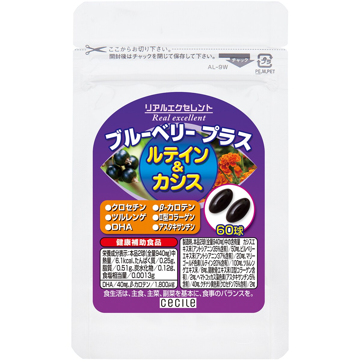 【定期便】リアルエクセレントブルーベリー プラス ルテイン&カシス1日の目安:2球