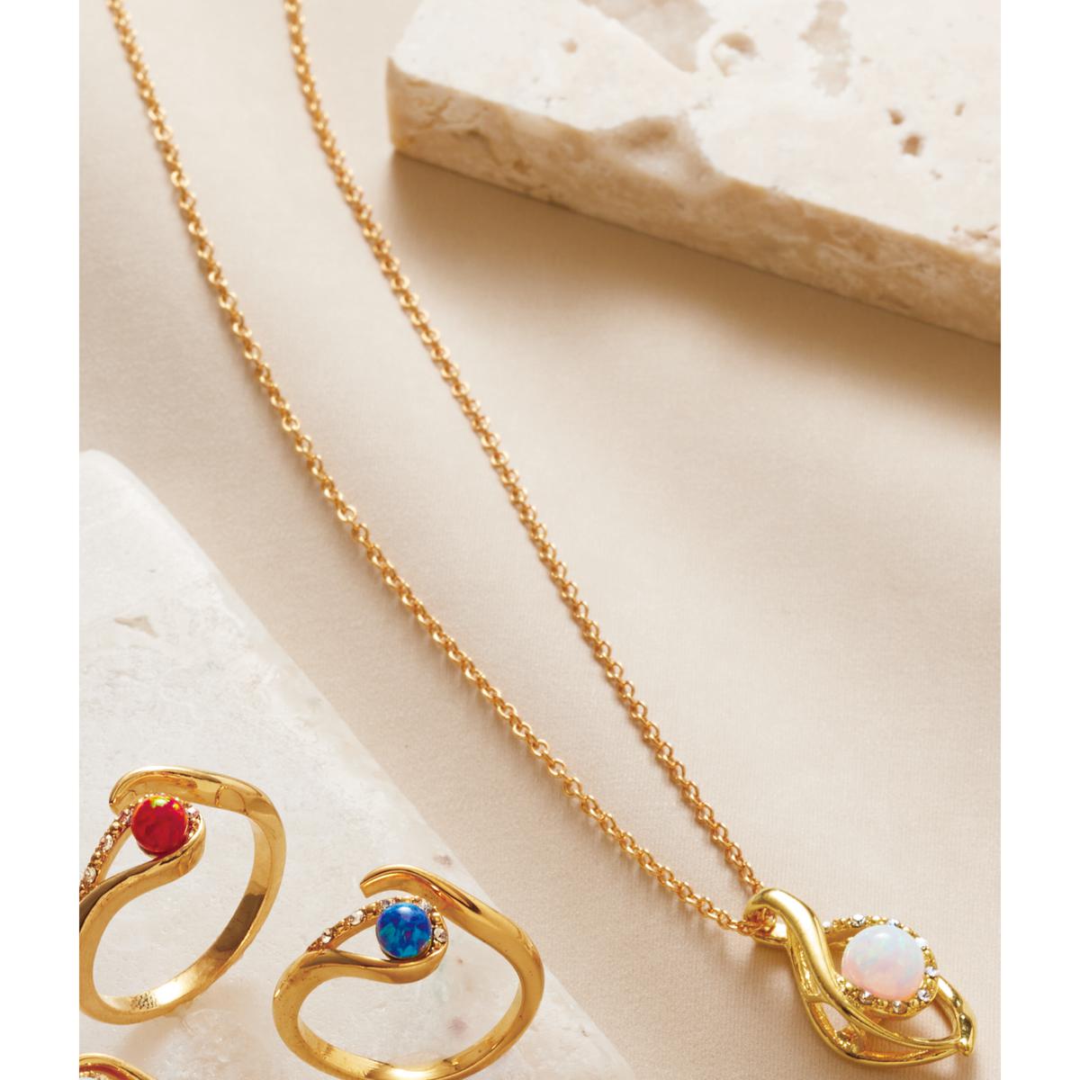 光を受けて輝きが変化する京都オパール®にクリスタルガラスをあしらった気品あるペンダント。ーデザインーペンダントの留め具部分は引き輪式。【雅びな発色と輝きが美しい京都オパール®】京都に拠点を置く世界的メーカーの京セラが長い年月をかけ、独自の技術により開発した京都オパール®は天然オバールと同じ石英粒子をもとに作り出され、透光性の高い発色と光を受けて煌めく輝きが魅力です。その気品ある停まいは存在感があり、コーディネートの優美なワンポイントになります。