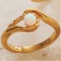 光を受けて輝きが変化する京都オパール®にクリスタルガラスをあしらった気品あるリング。-デザイン-つけたい指に合わせてサイズを微調節できます。【雅びな発色と輝きが美しい京都オパール®】京都に拠点を置く世界的メーカーの京セラが長い年月をかけ、独自の技術により開発した京都オパール®は天然オバールと同し石英粒子をもとに作り出され、透光性の高い発色と光を受けて煌めく輝きが魅力です。その気品ある停まいは存在感があり、コーディネートの優美なワンポイントになります。