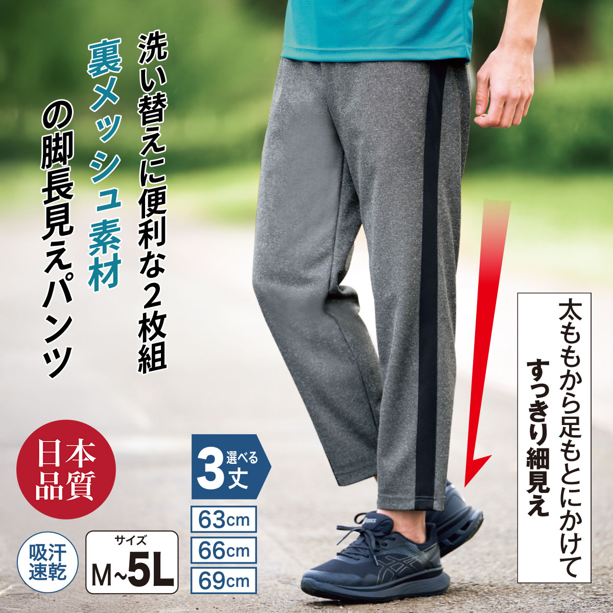 ■ポリエステル100%(裏ハニカムメッシュ)●ウエストはゴム&スピンドル仕様●前左右ポケット【股下寸法を必ずご確認ください】●洗濯機OK●日本製【股下3丈展開】(63・66・69cm)【日本製】 【大きいサイズも展開】(~5L)【色違い2本組】