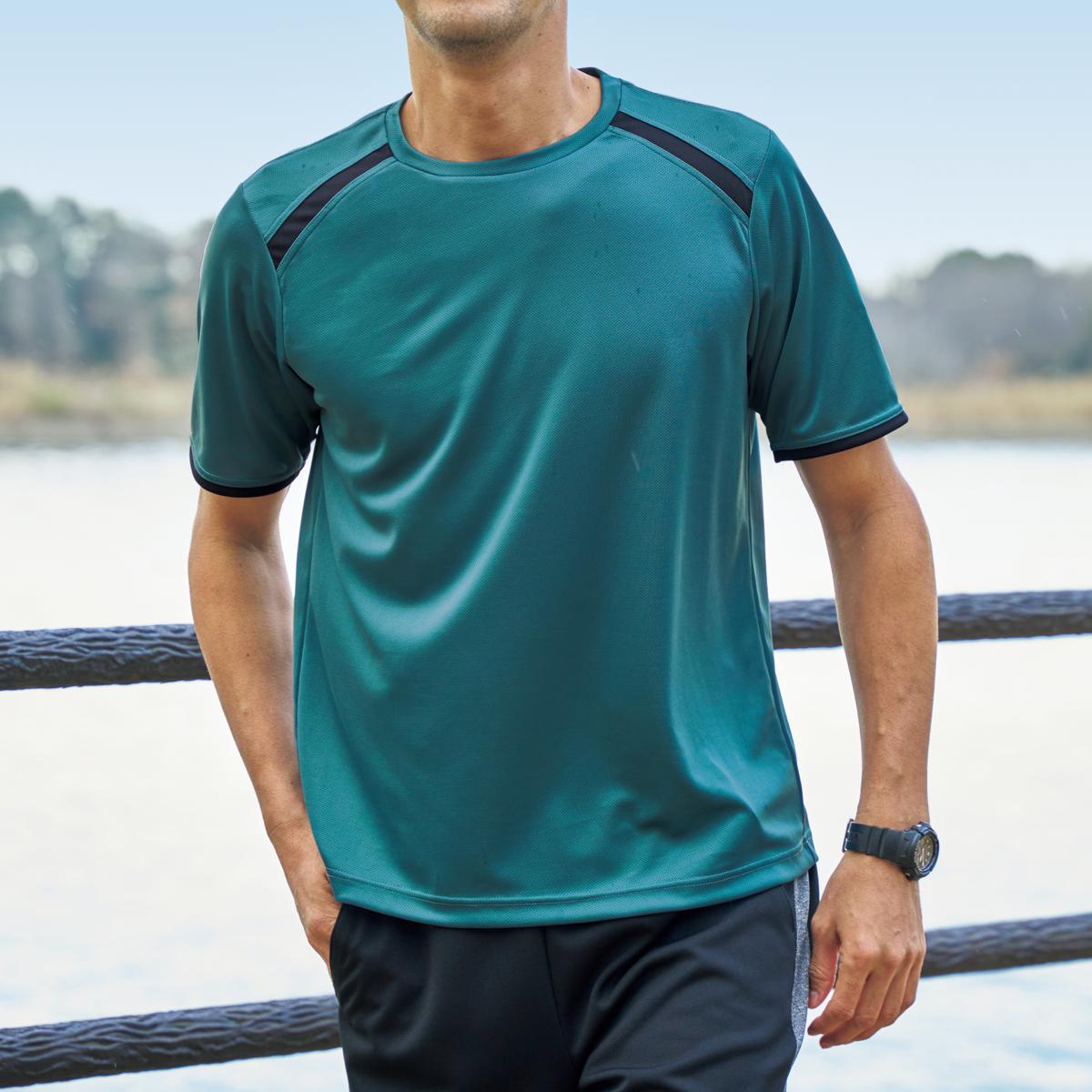 -お買い得ポイント-汗をかいてもサラリ紫外線もガードします。安心の日本品質です。-デザイン-軽い薄地ながら肌着が透けにくい色が特長。肩と袖口の配色がおしゃれ。-素材特徴-汗をかいても乾きやすい吸汗速乾のメッシュ素材。UVケア機能付きで紫外線対策にも。