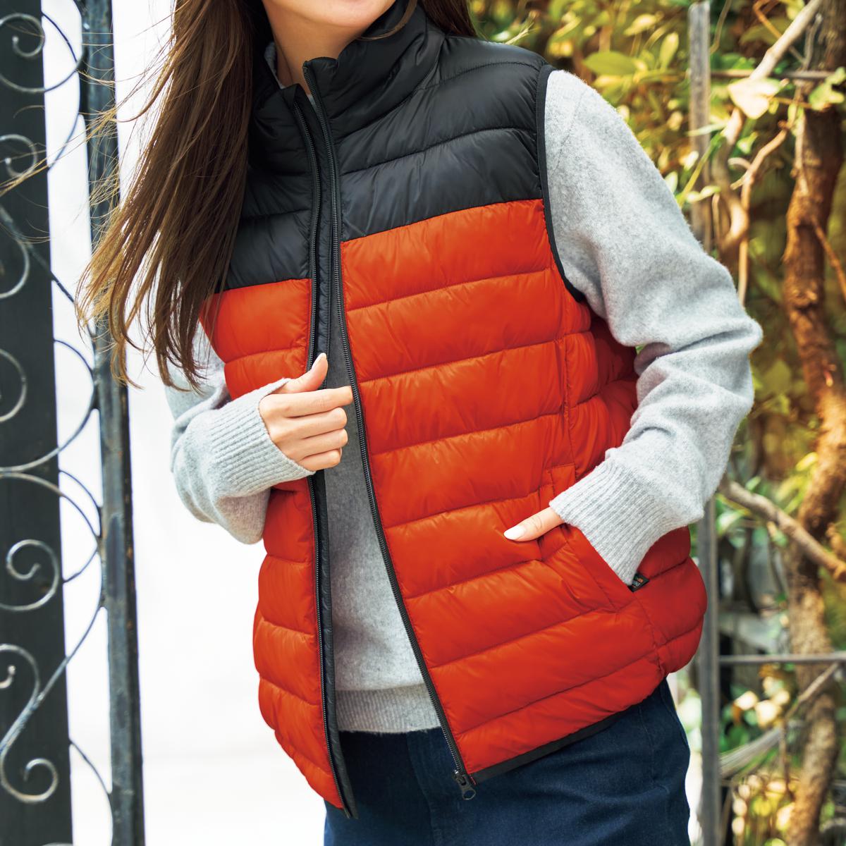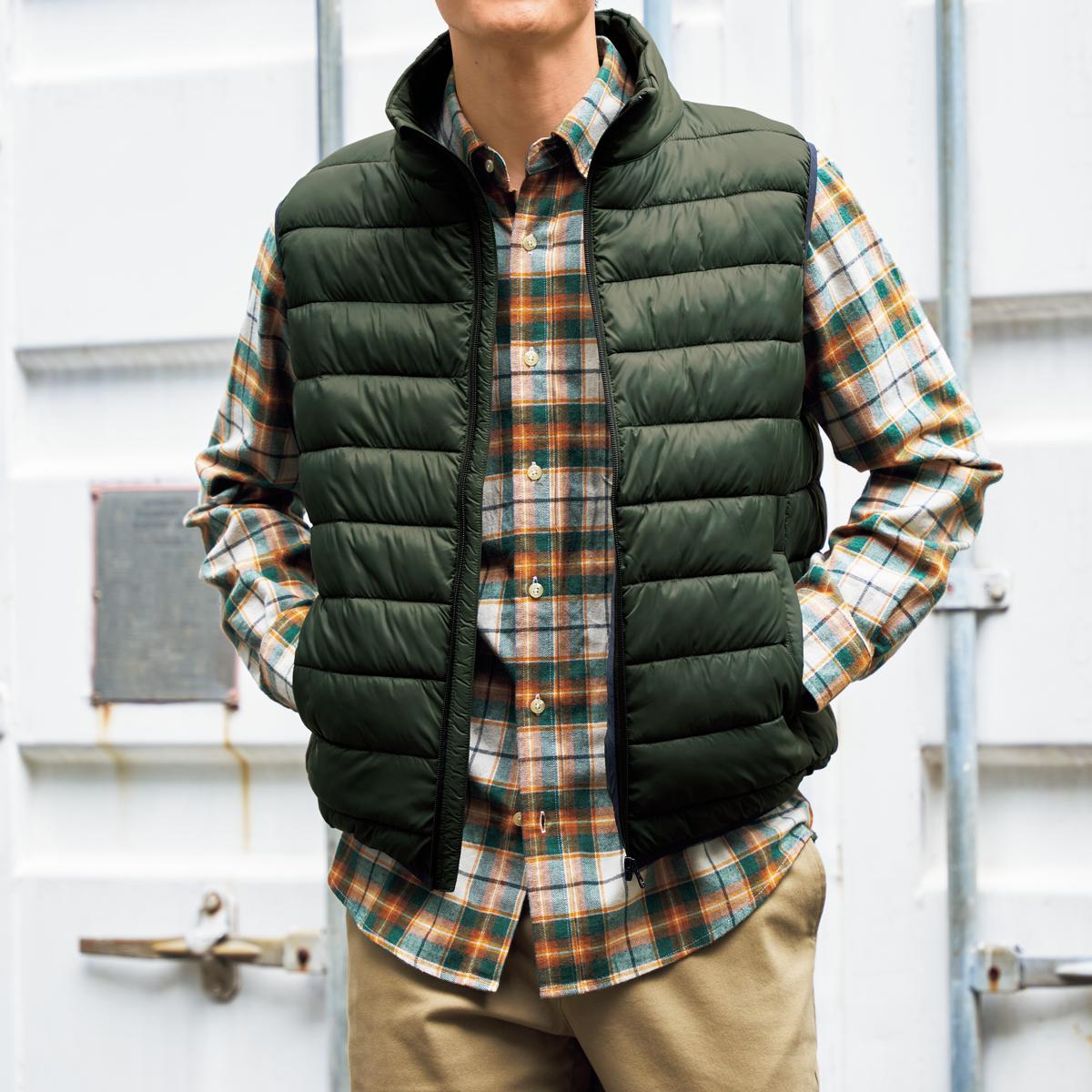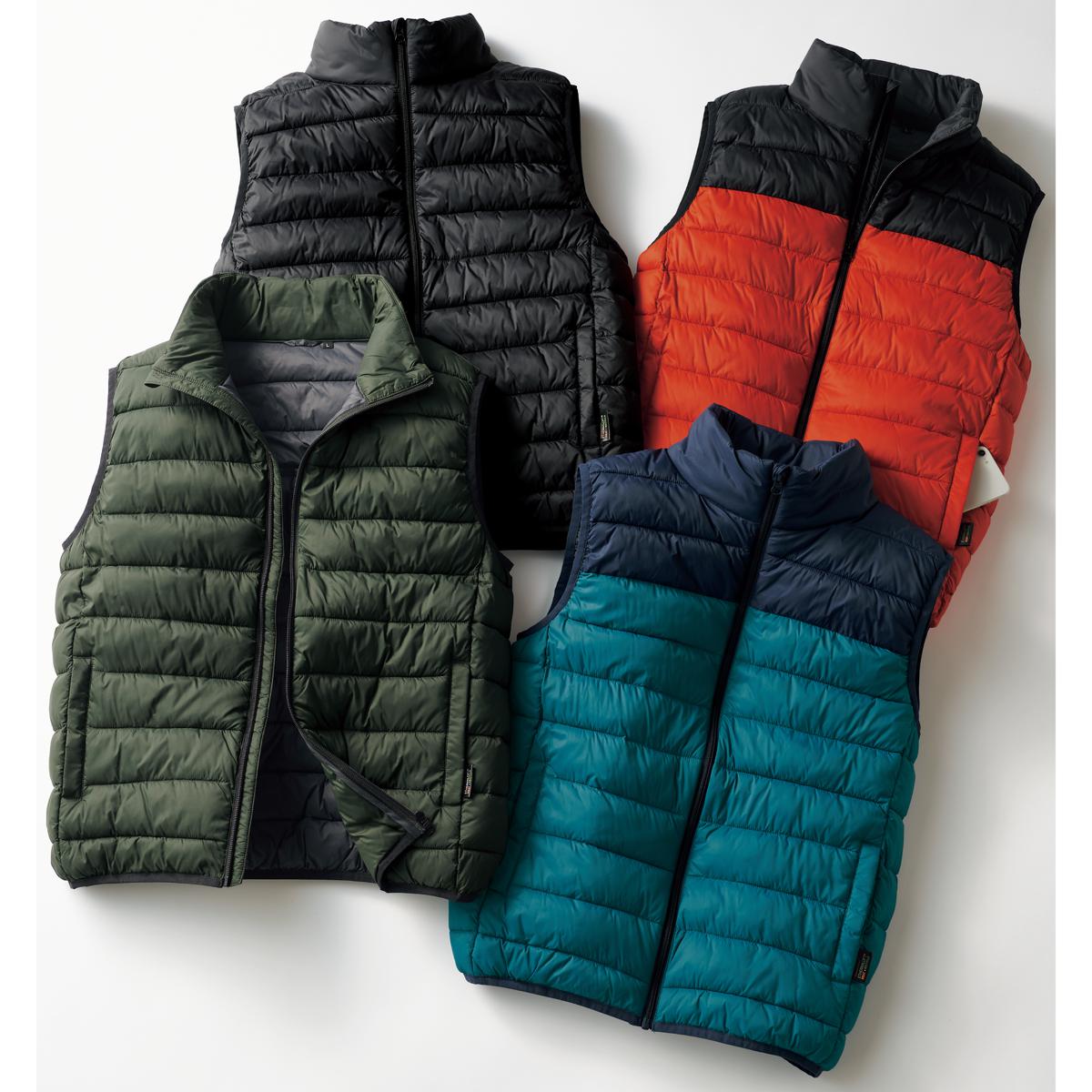 -お買い得ポイント-薄くて軽くあたたかなお手軽ブルゾンです。-デザイン-寒い時期にも重宝する中わたベスト。身幅がスッキリしているのでジャケットの下にも使いやすい。-素材特徴-独特の光沢感とハリがあり、高級感を漂わせています。はっ水加工を施しており、旅行中の急な雨でも安心です。
