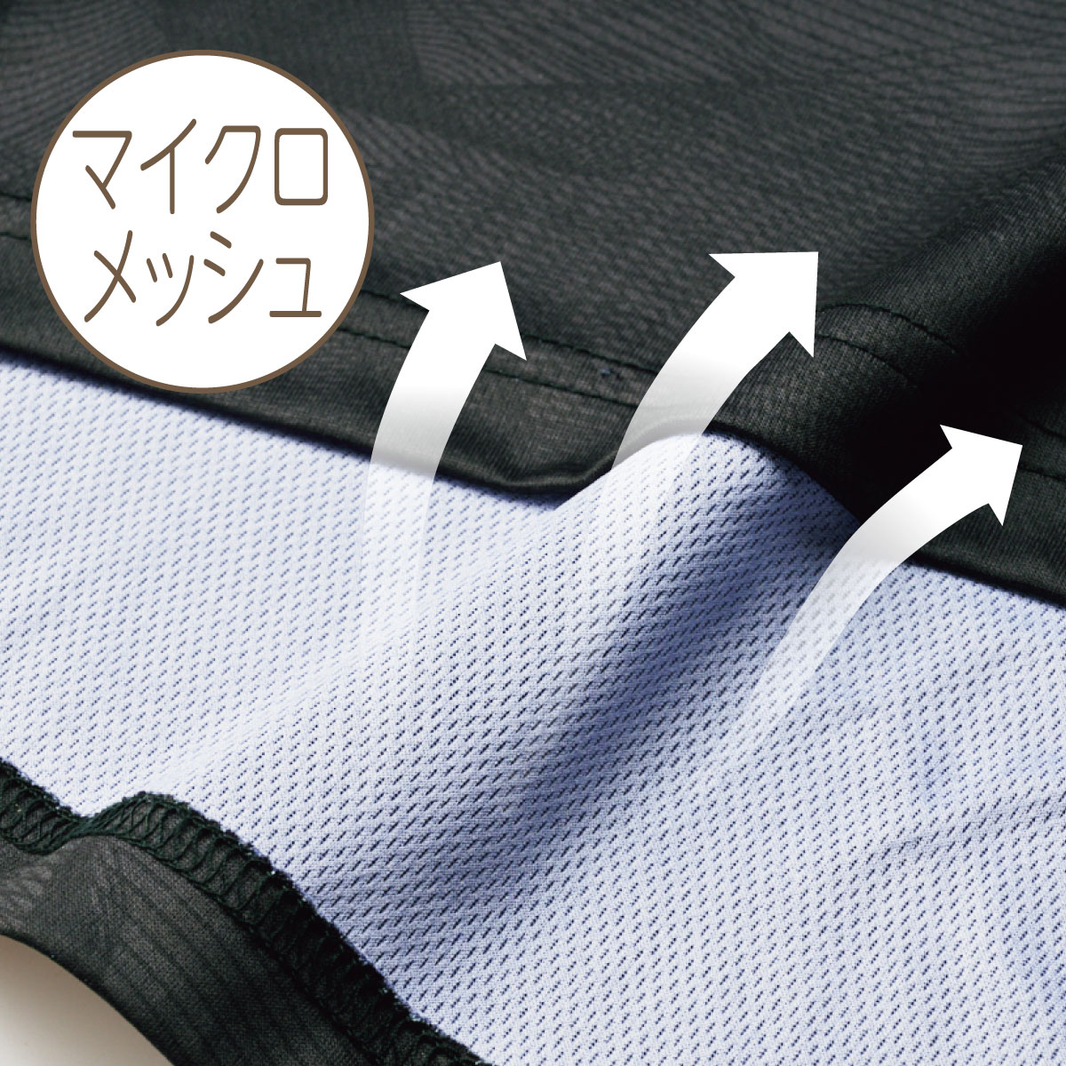 -お買い得ポイント-汗をかいても内側マイクロメッシュで清涼感が続く吸汗速乾Tシャツです。-デザイン-スタイリッシュな幾何学柄が魅力。-素材特徴-通常より細かい網目で風を通しやすく、放熱にも優れたメッシュ素材。