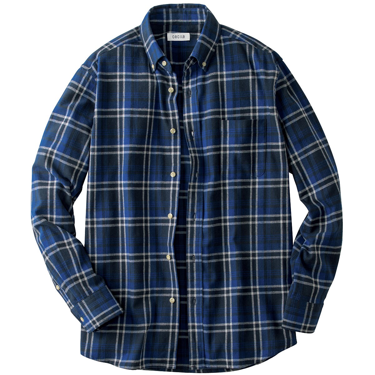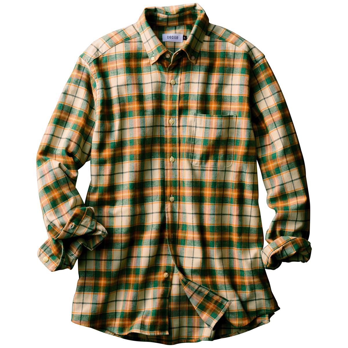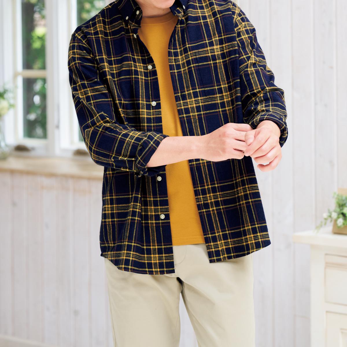 綿100%先染めチェック柄フランネルシャツ(ボタンダウン仕様)
