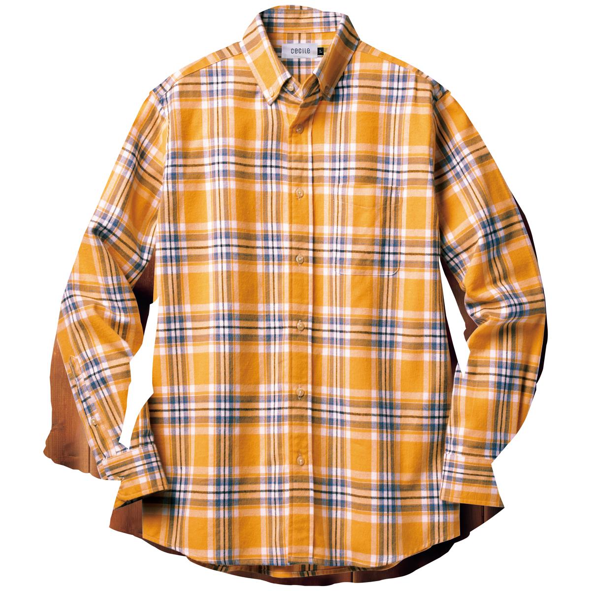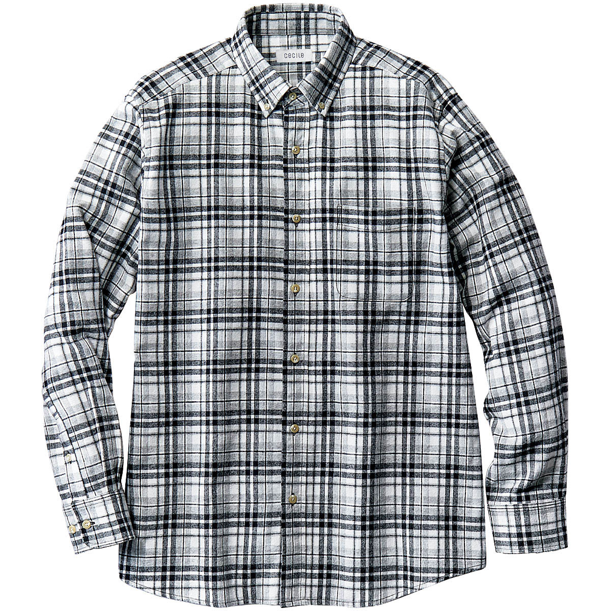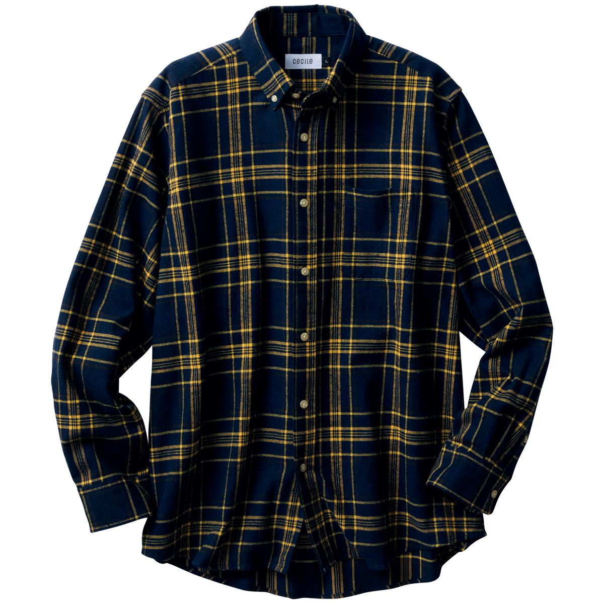 綿100%先染めチェック柄フランネルシャツ(ボタンダウン仕様)