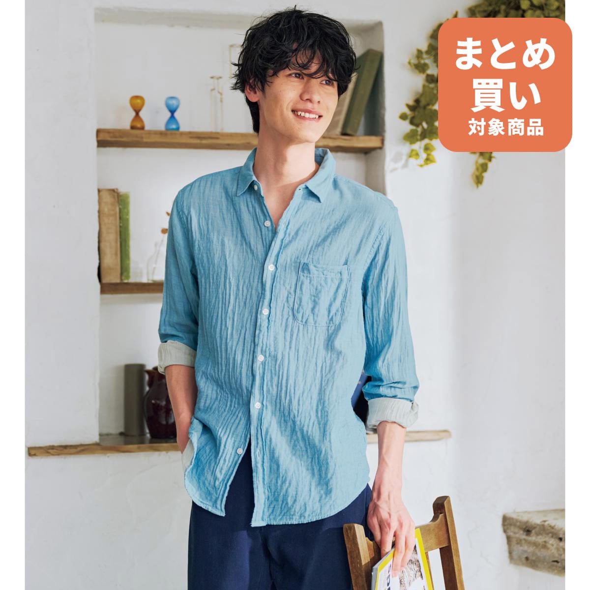 -お買い得ポイント-洗う度に柔らかく、肌になじむ。心地いい綿100%ダブルガーゼ仕立て。ゆるく着崩して大人の爽やかさを。-デザイン-爽やかなカラーが涼しげ。袖をまくると裏面の白がアクセントになる1枚です!-素材特徴-肌触りの良く通気性のあるダブルガーゼ生地です。