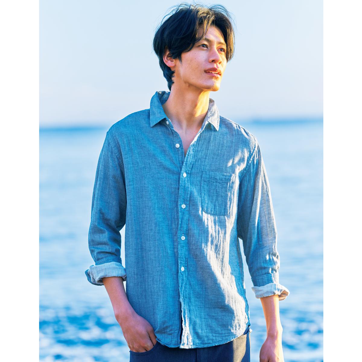 ニュアンスのある表情と涼しさがうれしいガーゼの二重織りシャツ。サラリと風を通すクールな感触を楽しみたい。