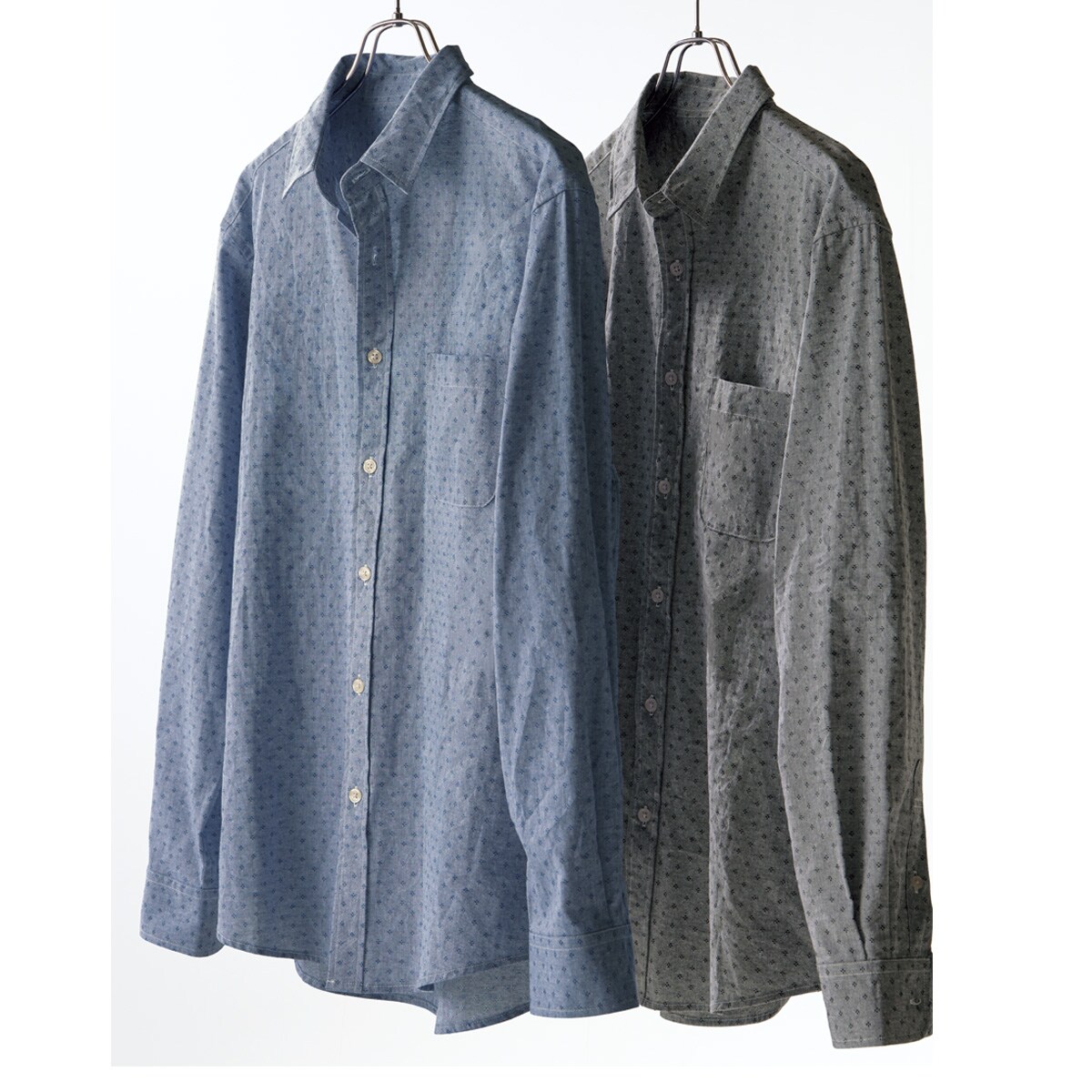-お買い得ポイント-デニム・チノパン・スラックスなど、様々なボトムと相性がよく、1枚でスタイリングが決まる頼もしいシャツです。-デザイン-きちんと感のある織柄に、少し小さめの襟がスマートな印象。-素材特徴-複数の糸を織り合わせて模様を描く「ジャカード織」ならではの凹凸があり、サラッとした着心地です。