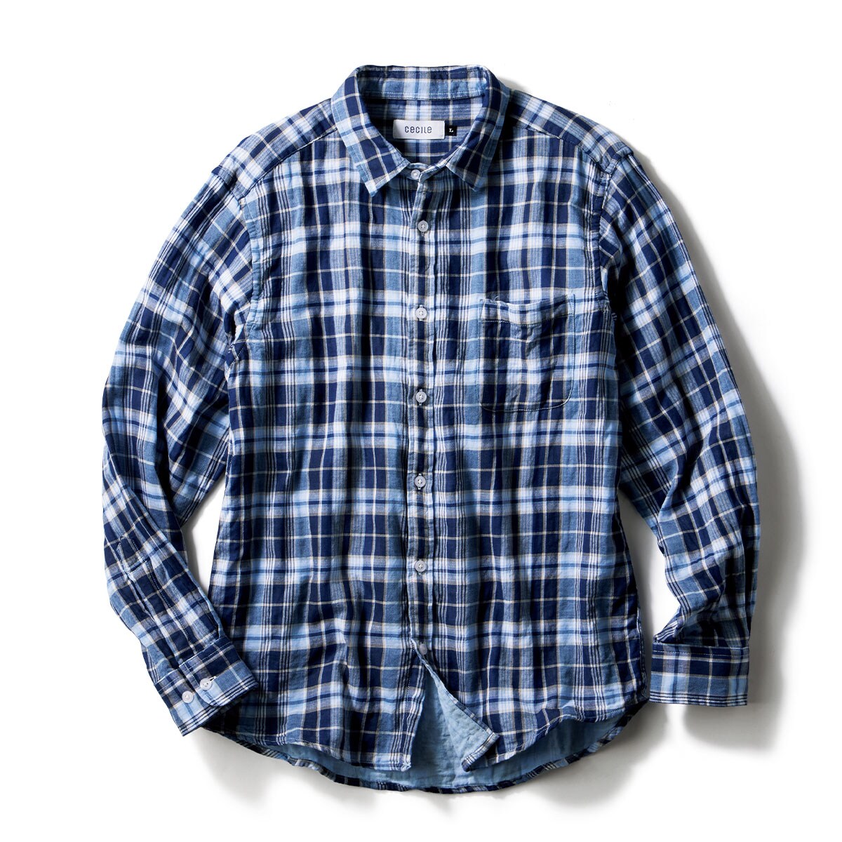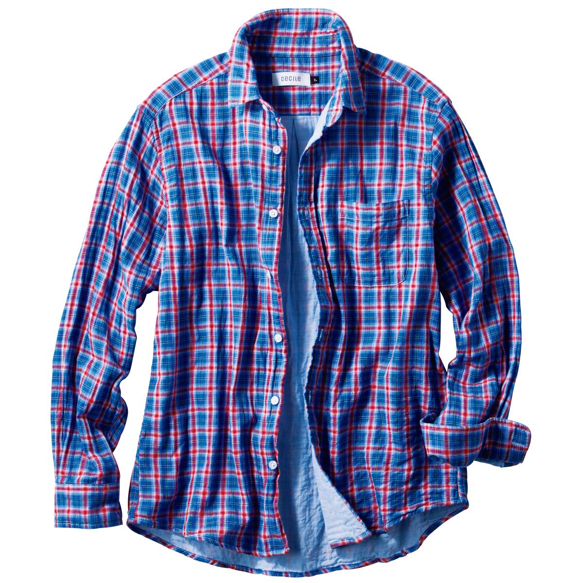 綿100%ダブルガーゼチェックシャツ【長袖】