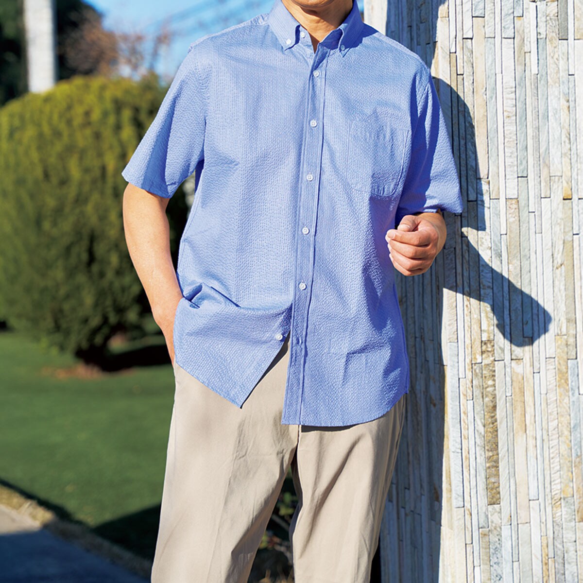 -お買い得ポイント-汗ばむ暑い日も、通気性がいいから一日中サラッとした着心地に。-デザイン-シンプルな無地のシャツなので、着回し自由自在(半袖タイプ)。-素材特徴-綿混素材。サッカー素材なので、肌ばなれがよく、着心地抜群です。