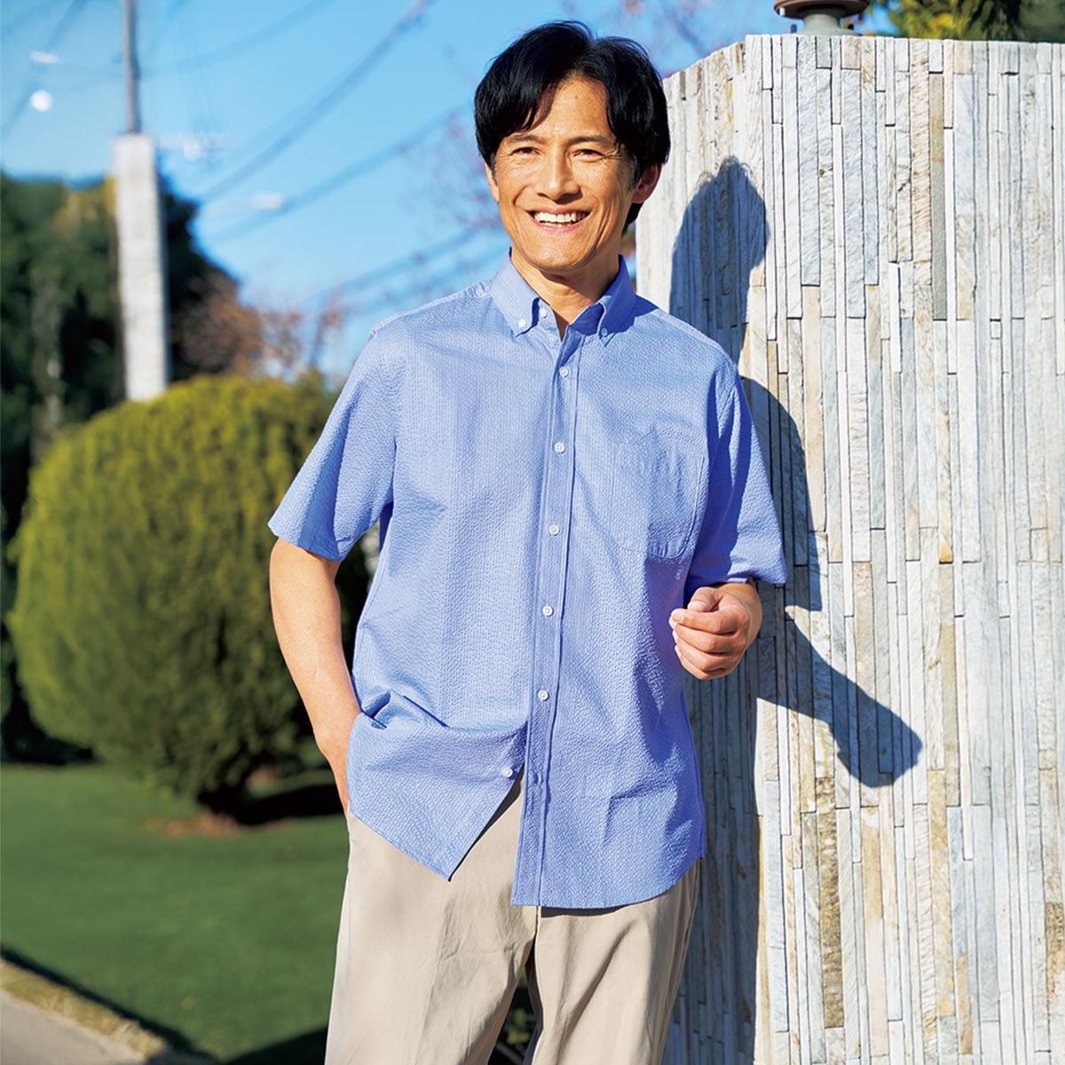 -お買い得ポイント-汗ばむ暑い日も、通気性がいいから一日中サラッとした着心地に。-デザイン-シンプルな無地のシャツなので、着回し自由自在(半袖タイプ)。-素材特徴-綿混素材。サッカー素材なので、肌ばなれがよく、着心地抜群です。