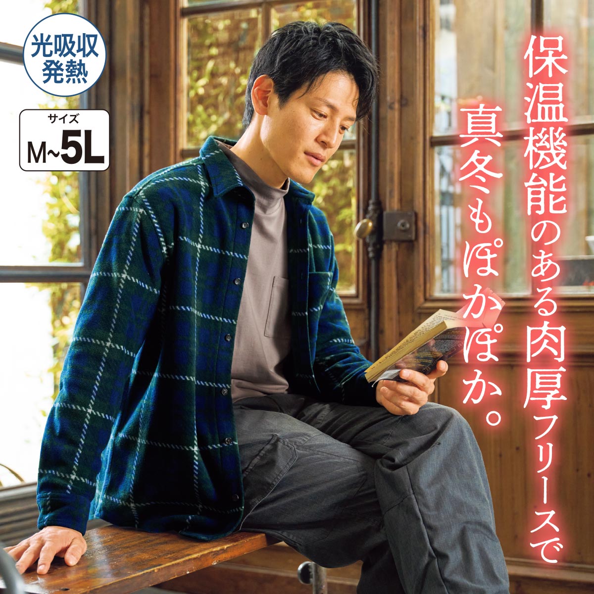 -お買い得ポイント-保温機能のある肉厚フリースで真冬もあたたかです。-デザイン-大きめのチェック柄。ストレッチが効いていて、ラクに着られます。1枚着でもボタンをあけて羽織りとしても◎。-素材特徴-光吸収発熱と蓄熱機能がついてぬくもりを持続します。