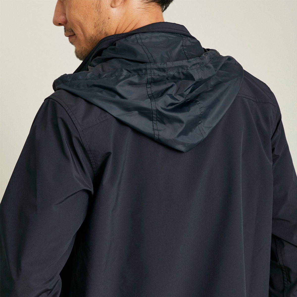 ・衿の立ち方がきれいなスタンドカラー。衿の中にはフード入りのインフード仕様。・スナップボタン付きのフラップポケットで収納力も高い。・袖は樹脂製ブロックの面テープ仕様でフィット感の調節可能。*こちらの素材は表面と裏面を別組織で仕上げた二重織りとなっており、ほどよくハリ感・しっかり感の仕上がりです。そのため裏地無しの仕上げとしております。■[身生地]ポリエステル100%(二重織)[フード部分]ポリエステル100%●前左右ポケット●洗濯機OK●ミャンマー製、中国製【はっ水】▼はっ水加工は永久的なものではなく、繰り返しの着用や洗濯、汚れの付着により効果は低下します 【大きいサイズ・小さいサイズも展開】(S~7L)
