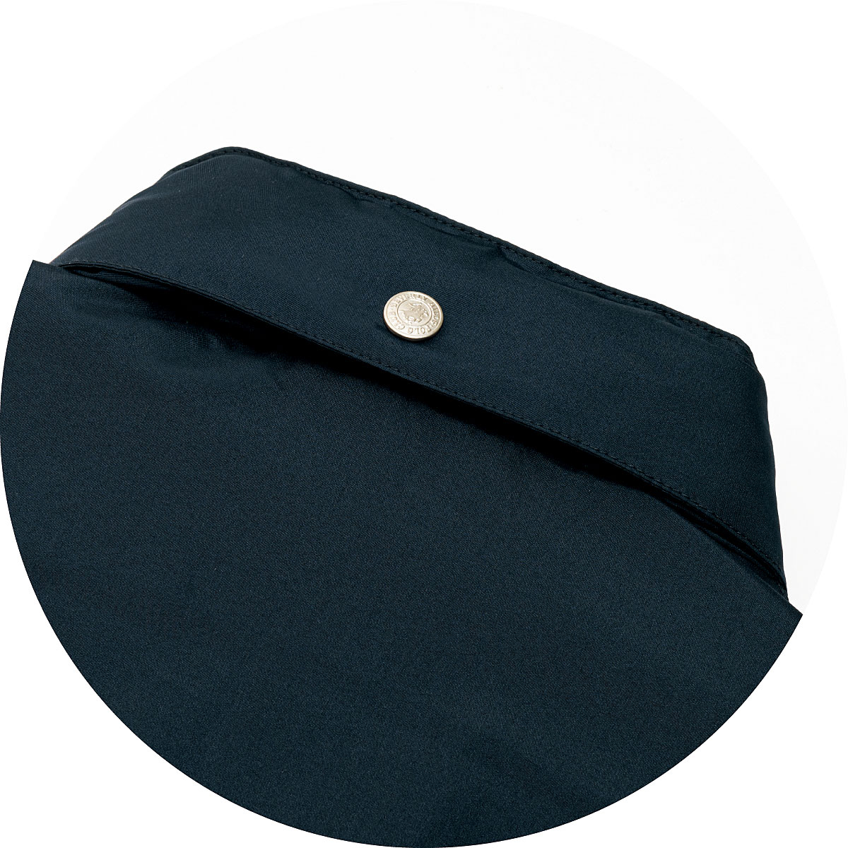 左腰ポケット口にロゴ刺しゅうのアクセント。