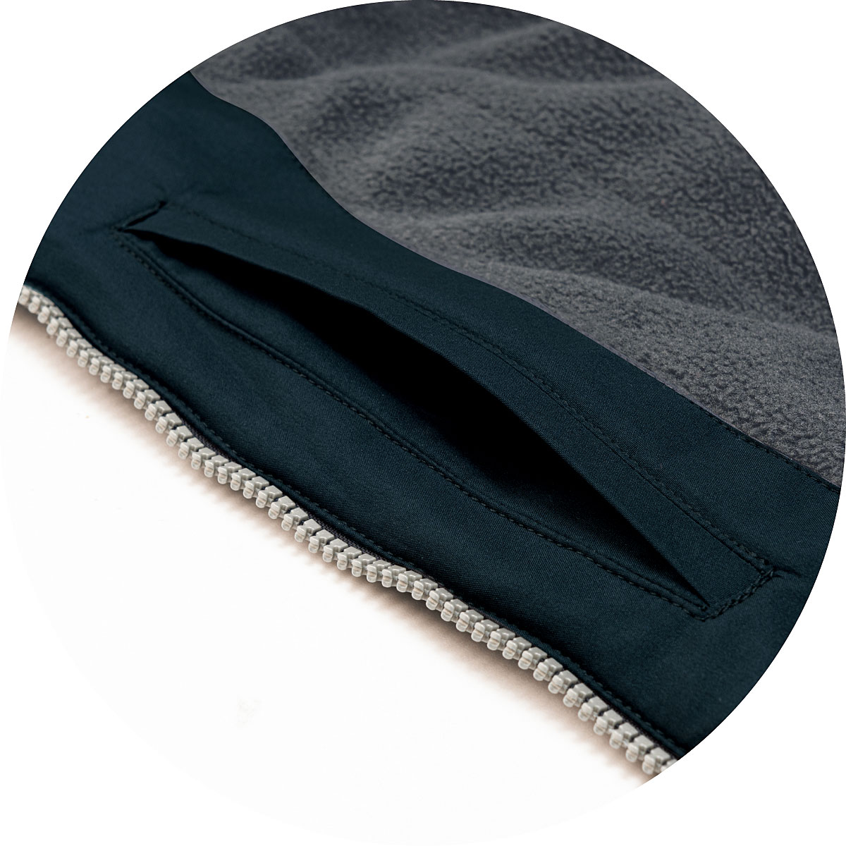 はっ水、インフード、多数ポケット(内ポケット1、胸ポケット1、左右腰ポケット2)など充実の機能性。加えて、裏フリース&中綿で旅先の寒さにも即応。デザインとしても随所にある刺しゅうデザインがさらに魅力をさらにあげてくれます。