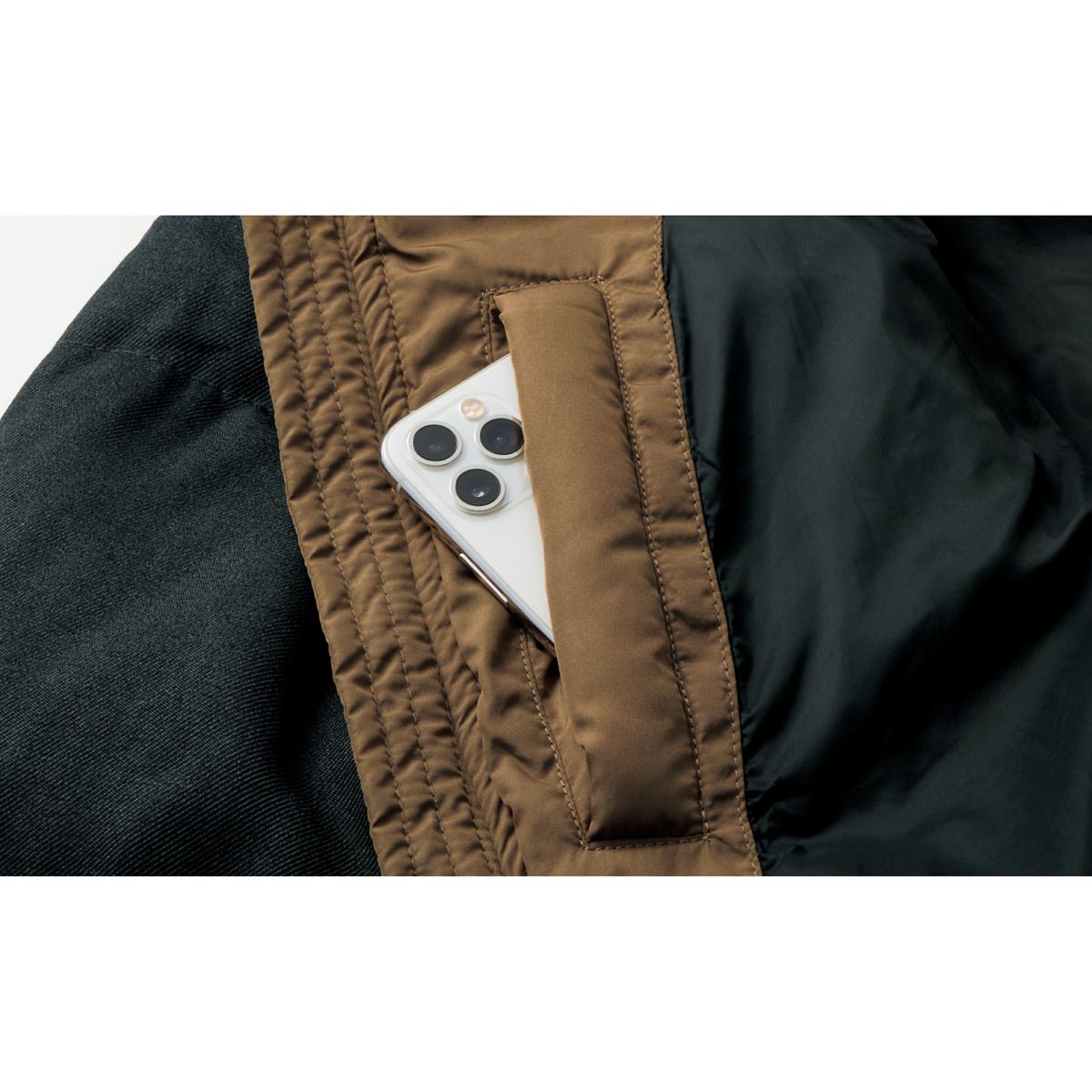 左右に内ポケット付き 左右にある内ポケットには、スマホやカイロなどが入れられて便利