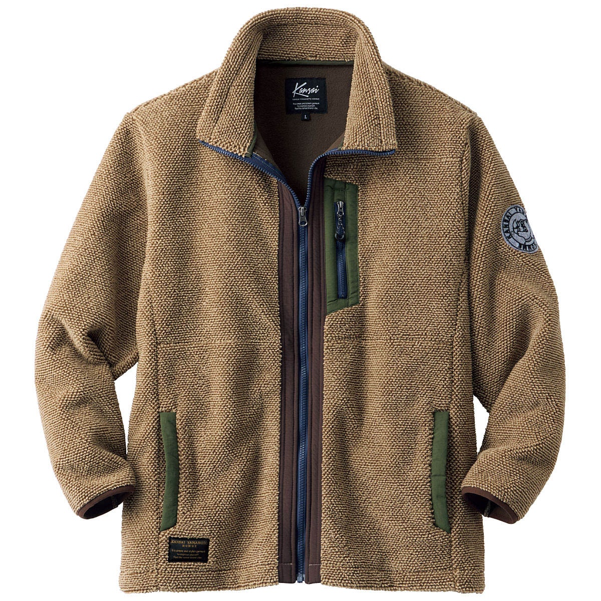 -お買い得ポイント-ボリューム感のあるぬくもりブルゾンです。-デザイン-ポケット口、ジップの配色がアクセントになっています。左腕にワッペン付き。ポケットが多いのもうれしいポイントです。-素材特徴-毛足が長く、モコモコした見た目のボア生地と、フリース素材を組み合わせた生地で、保温性が高く、肌触りが柔らかいのが特徴です。