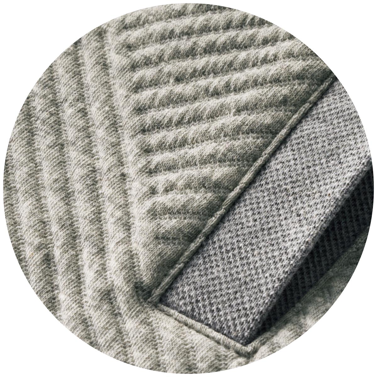 ふくれジャカード 凹凸感のある織りが陰影をつくり、無地でも風合いのある表情に。