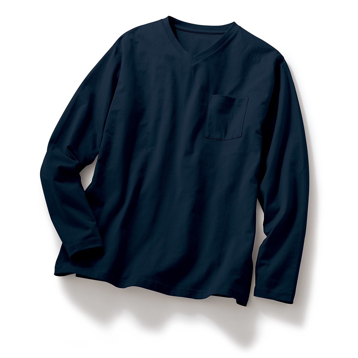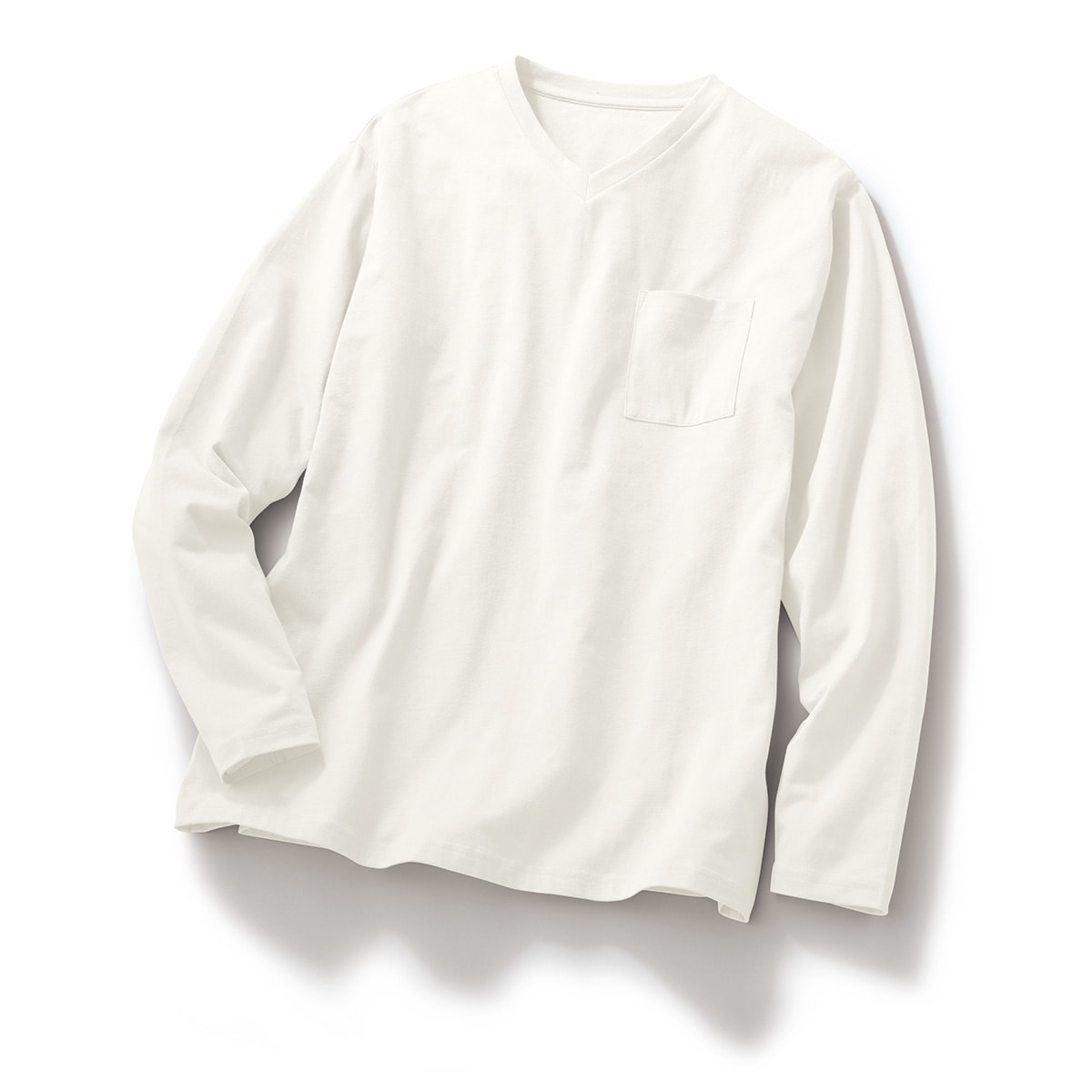 -お買い得ポイント-スマートヒート「ぬく綿」。薄くて、軽くて、なめらかな着心地で、やさしいぬくもりに包まれます。-デザイン-首元すっきりで抜け感のあるVネックTシャツです。-素材特徴-綿100%のふわっとやわらかな肌ざわりはそのままに、体から発散される水分を吸着して発熱する吸湿発熱素材。