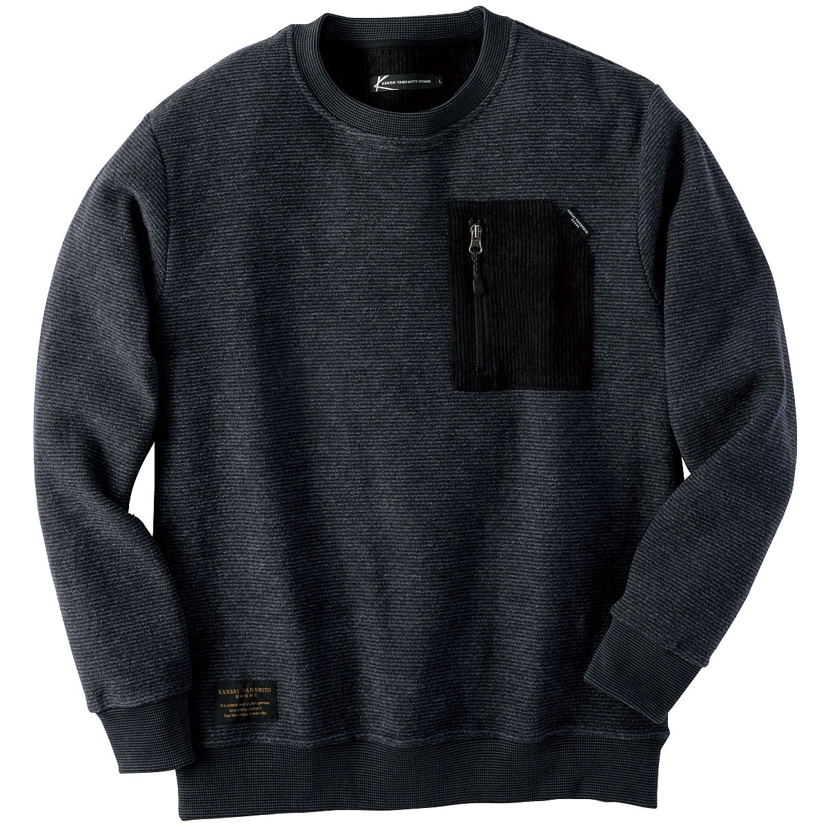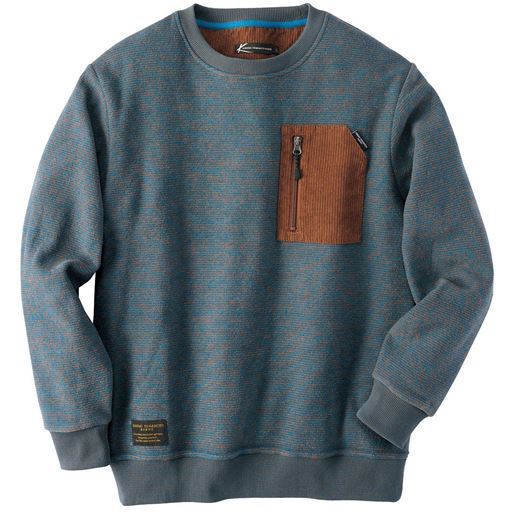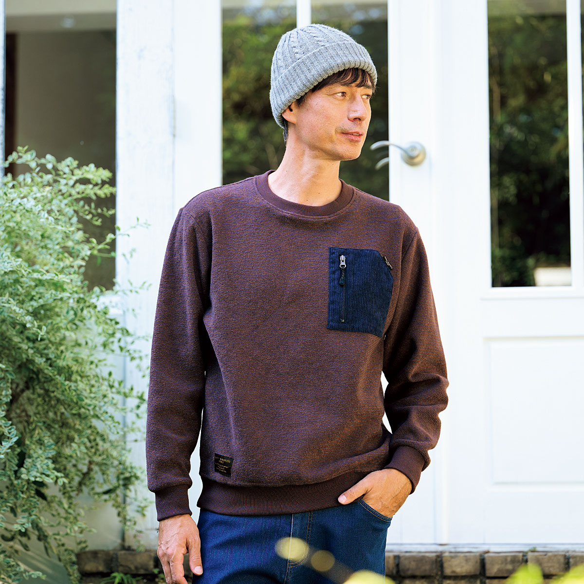-お買い得ポイント-デザインも魅力の冬仕様トレーナーです。-デザイン-ポケットの配色がおしゃれです。イヤホンなどを収納できるポケット付き。-素材特徴-編地がぽこぽこ浮きだっているブークレー起毛素材。秋冬らしいボリューム感と暖かみをプラスしています。背当てとポケット部分はコーデュロイ素材。